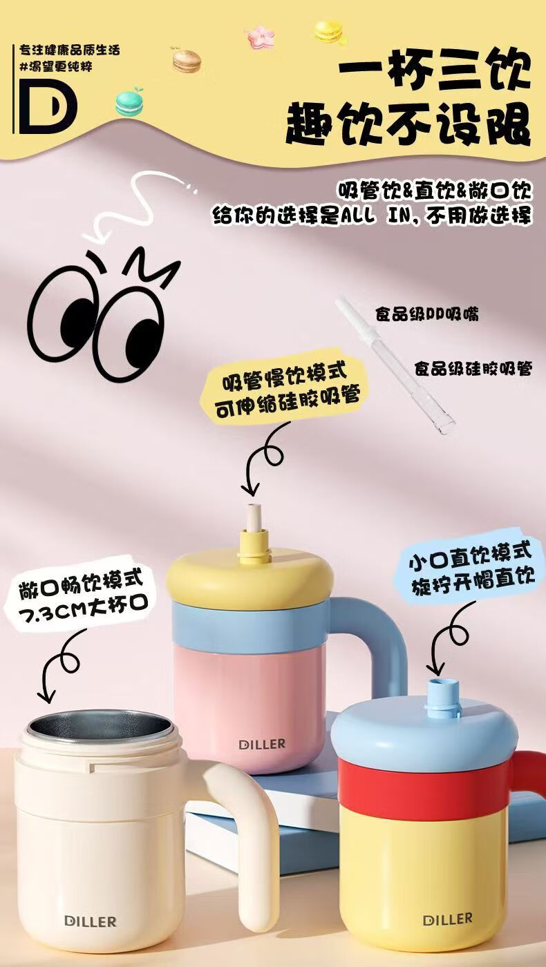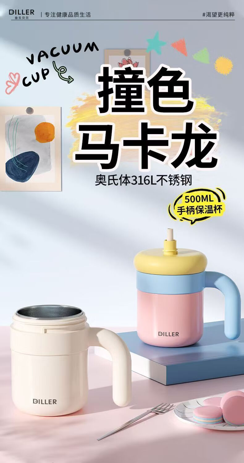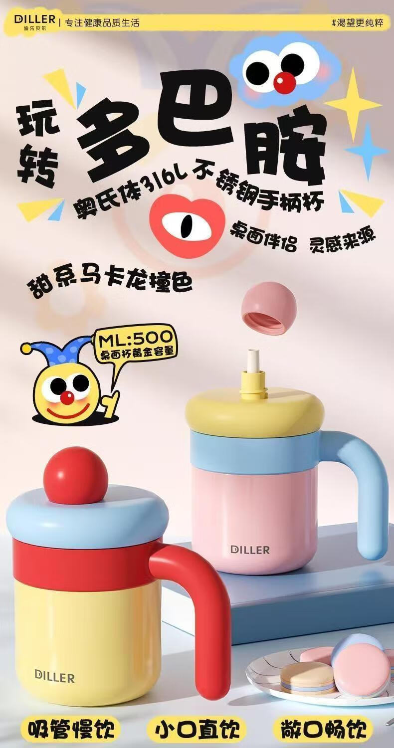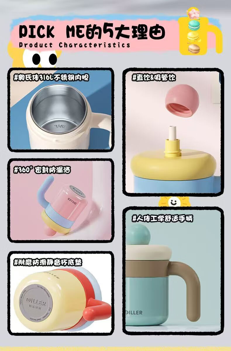 桌面办公杯;内置隐藏式吸管;马卡龙配色