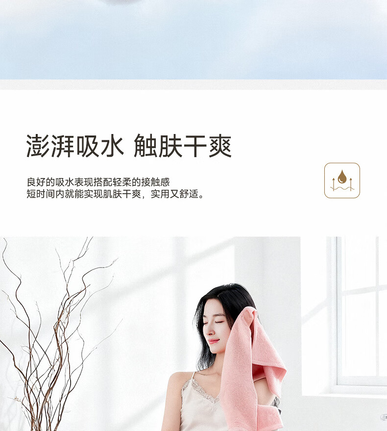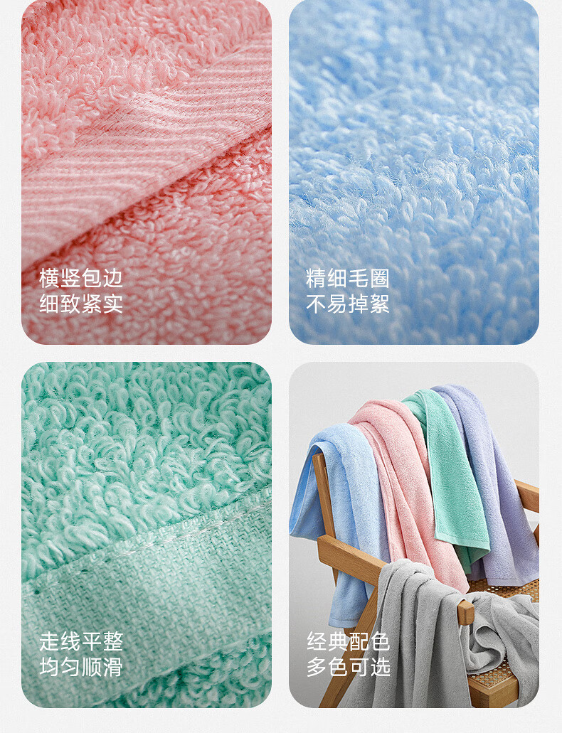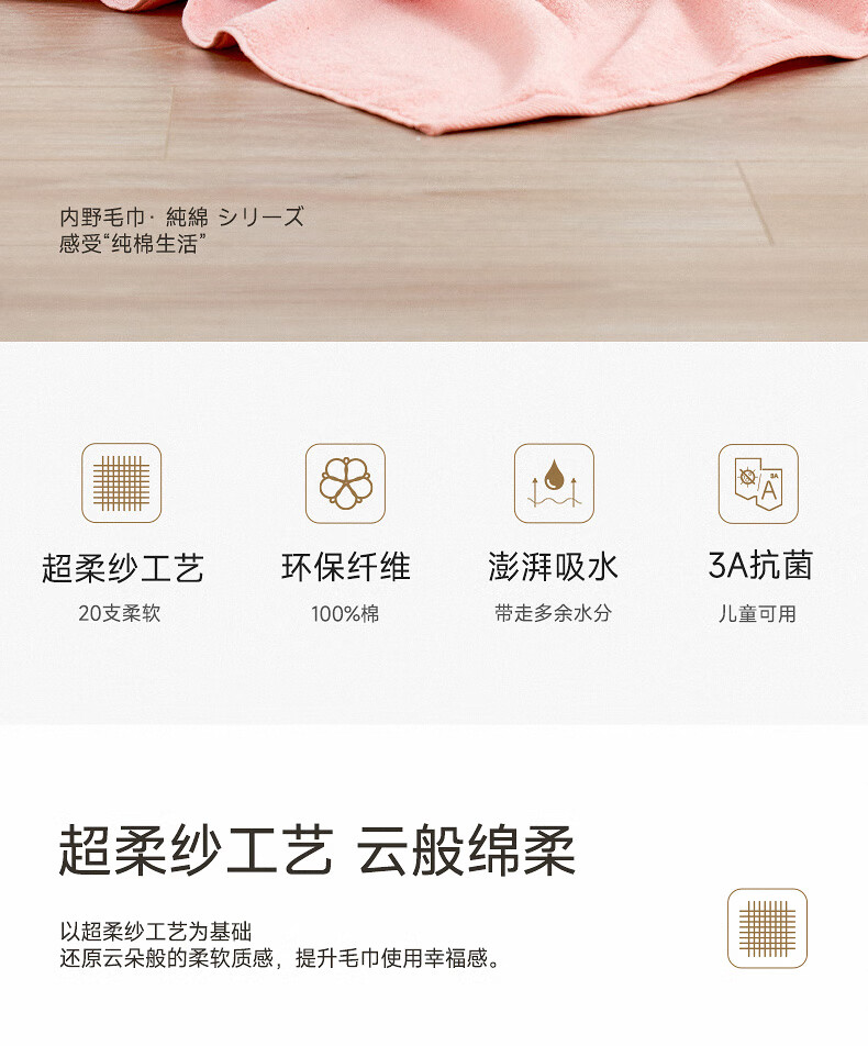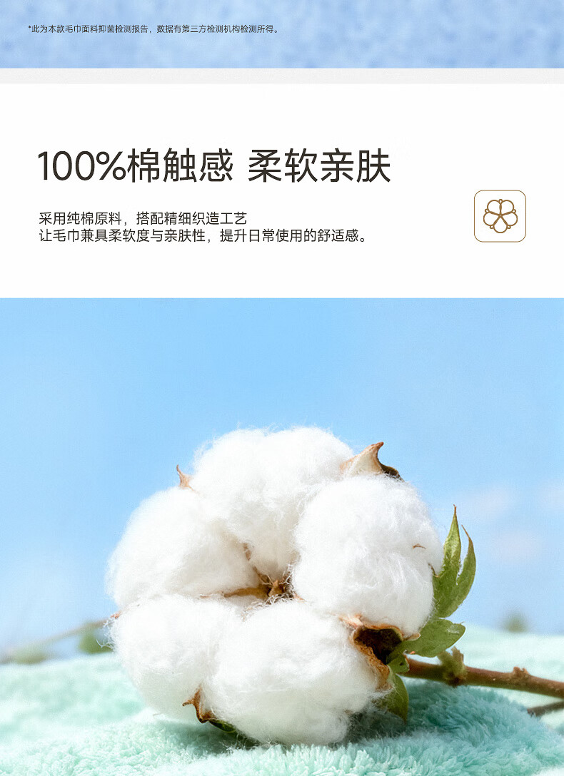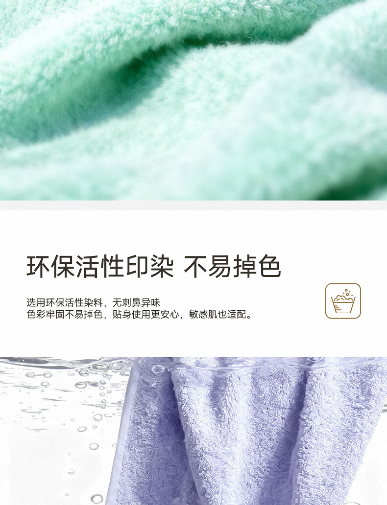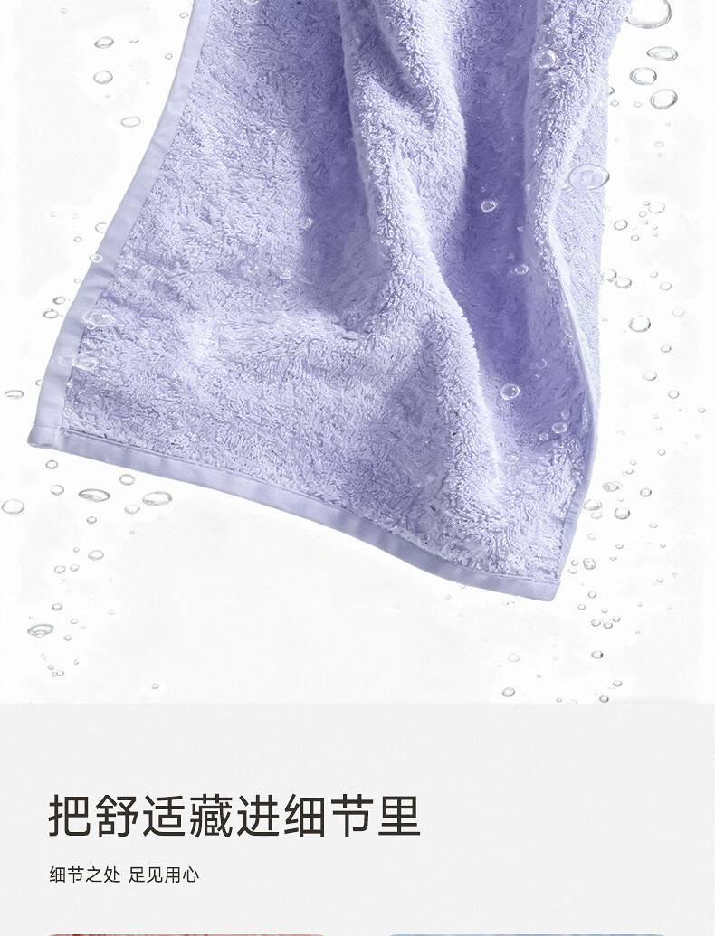 细腻柔软,柔韧耐用;精梳棉圏强劲秒速吸,清爽擦拭;不留水渍,不易留废毛,速干爽