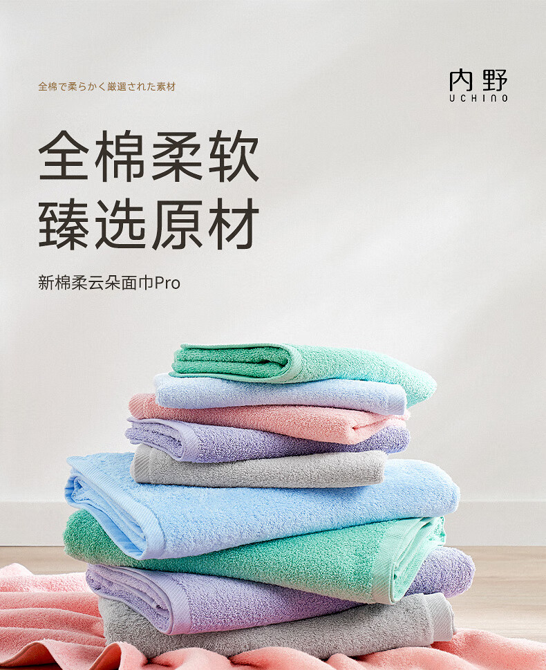 内野 棉柔云朵面巾3条装JDWPH02724-N