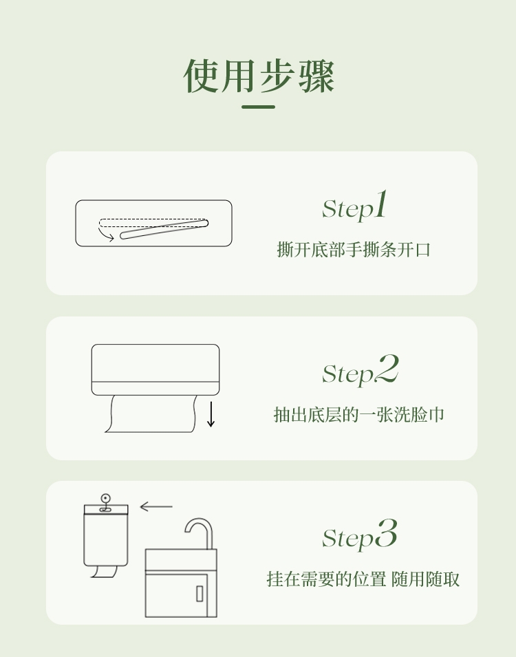 源于自然,绿色安心;加大加厚,干湿两用;悬挂设计,空间零占地