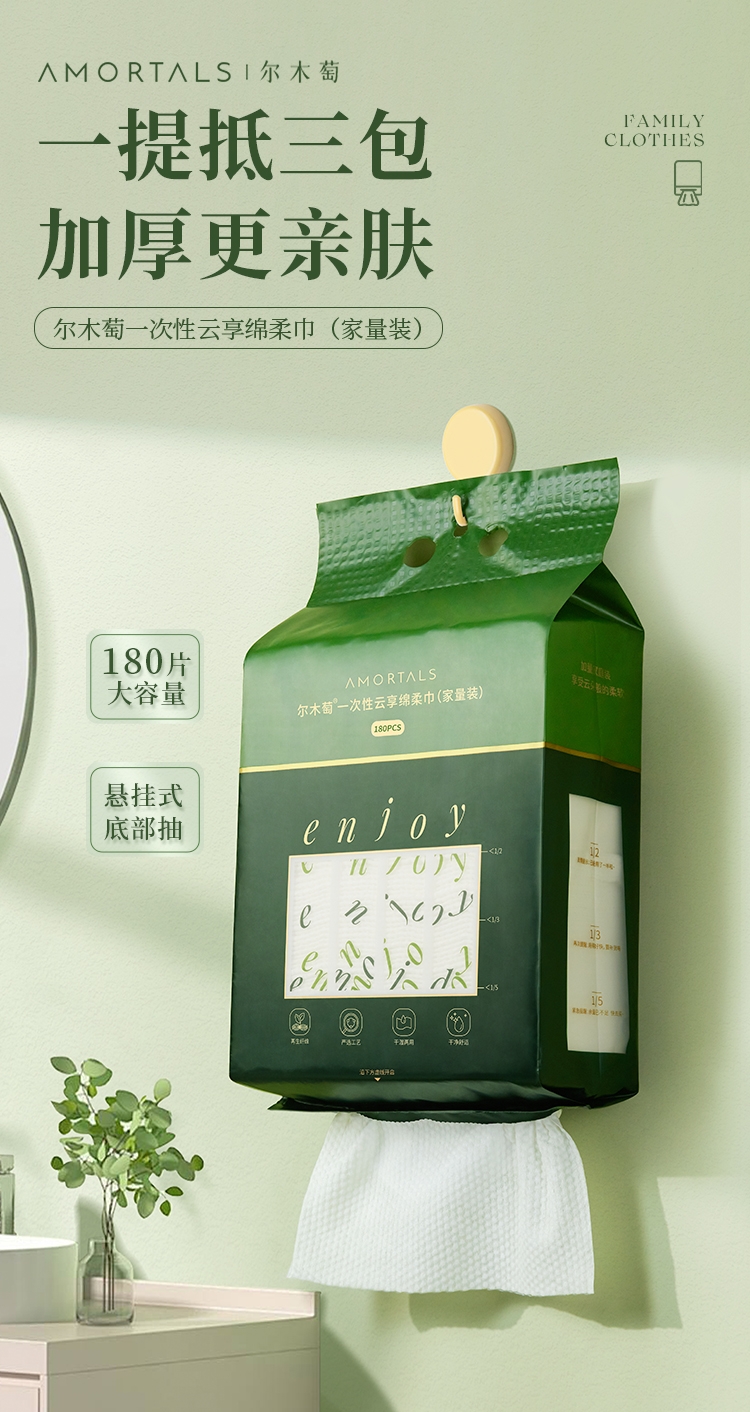 尔木萄 悬挂式干湿两用洗脸巾绵柔巾5包