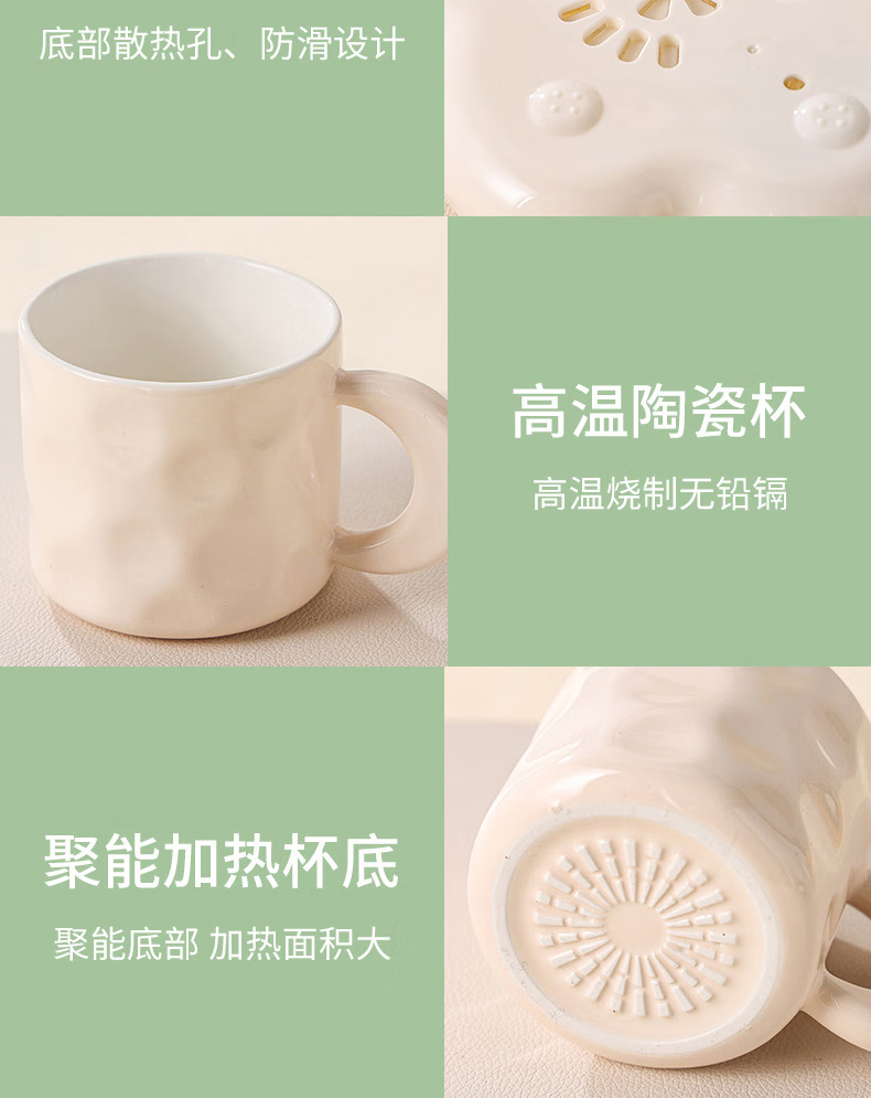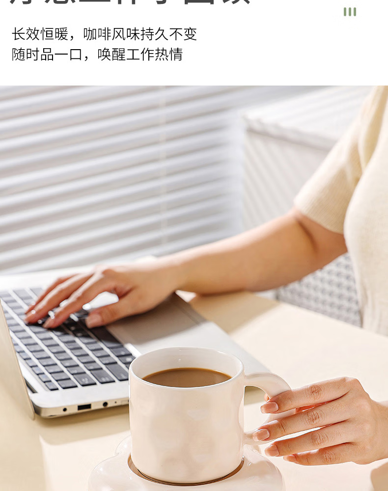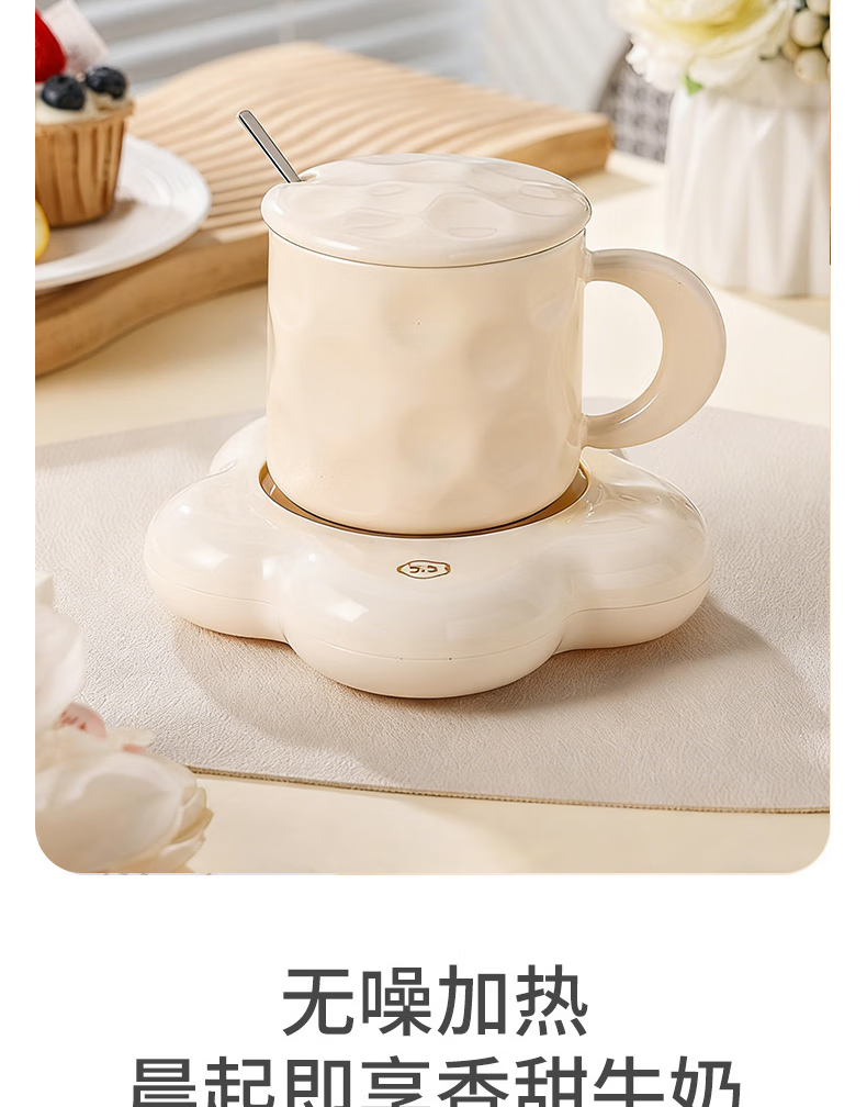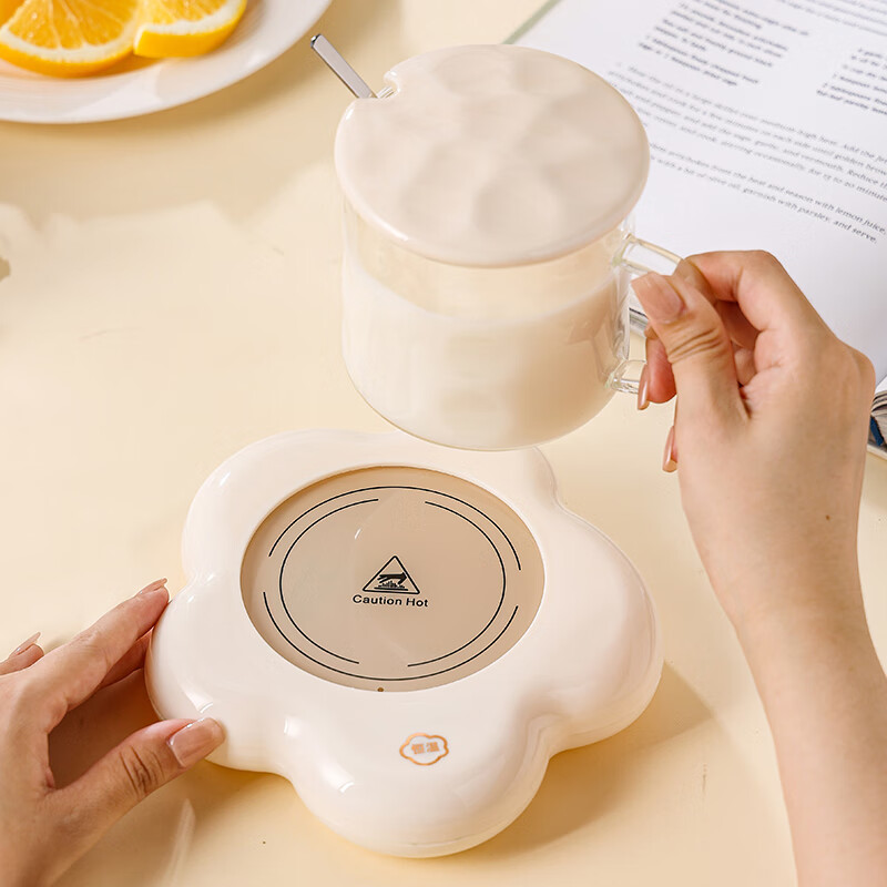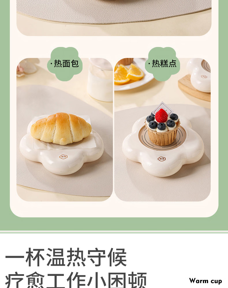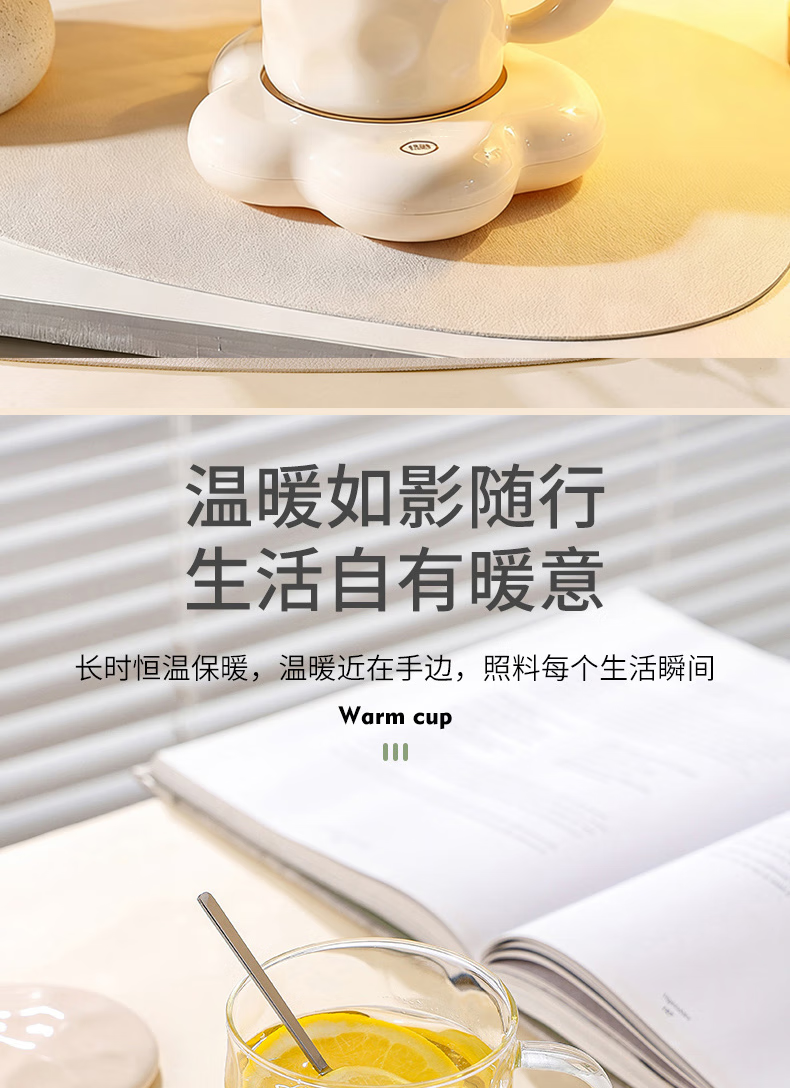 55度保暖恒温,照料每个生活瞬间,暖暖的很贴心;;重力感应设计,物品超过250g自动开启,拿开自动关;硅胶体发热膜,整圈发热,恒温均匀