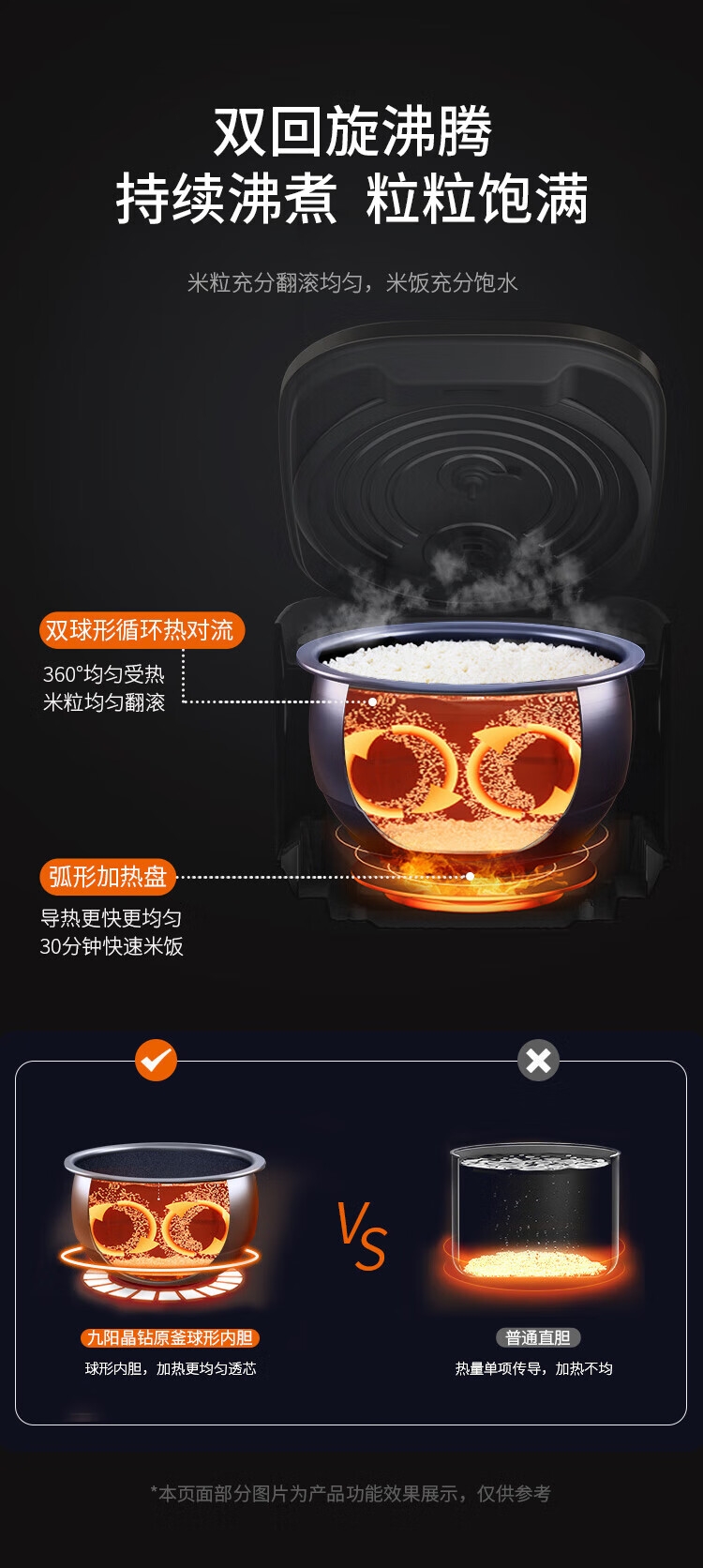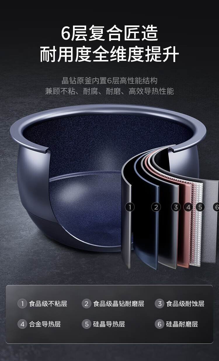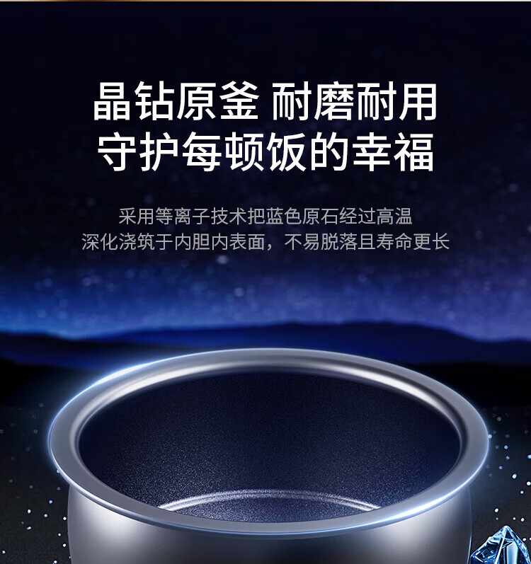 晶钻原釜,匠心好米饭;球釜内胆薄盖造型;9大功能