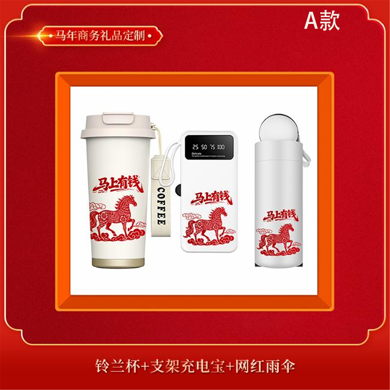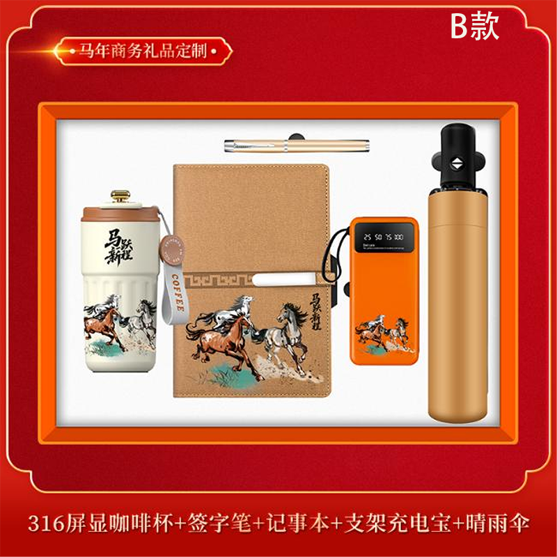 B款配置:450ml咖啡杯+A5平装本+雨伞+10000mAh支架电源+金属笔