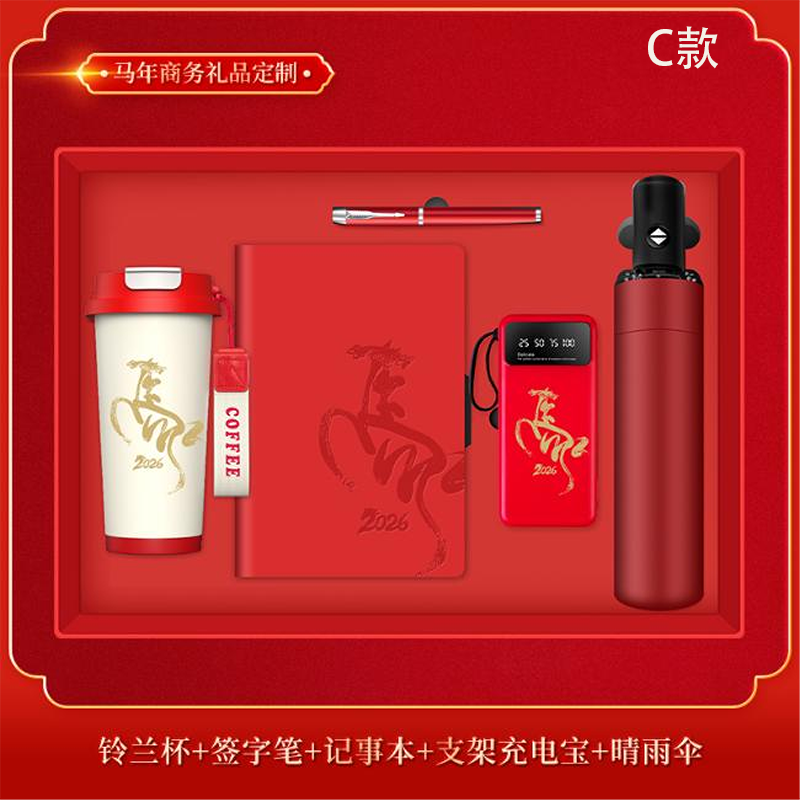 C款配置: 500ml铃兰杯+A5平装本+雨伞+ 10000mAh支架电源+金属笔