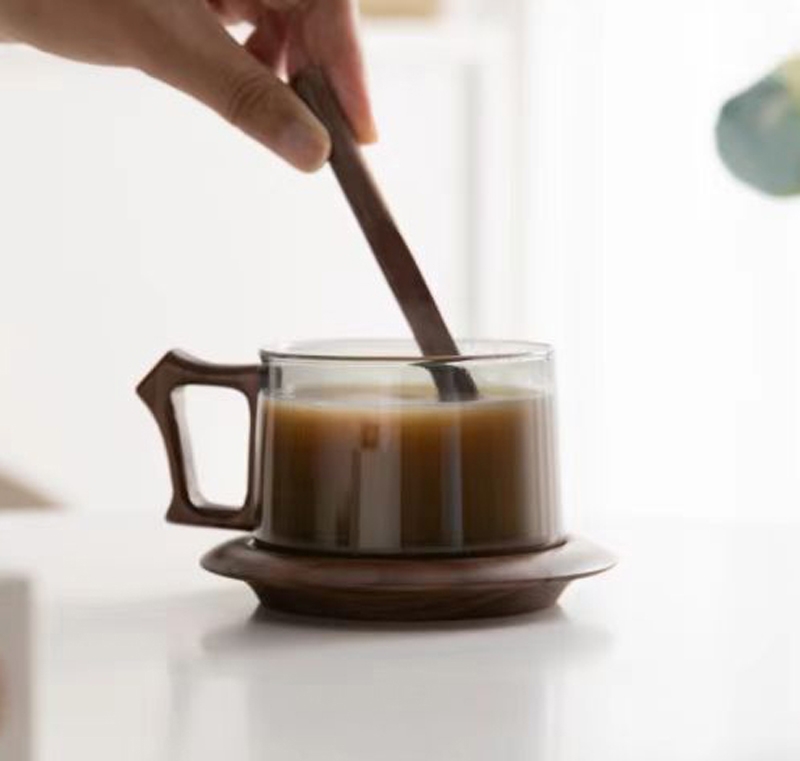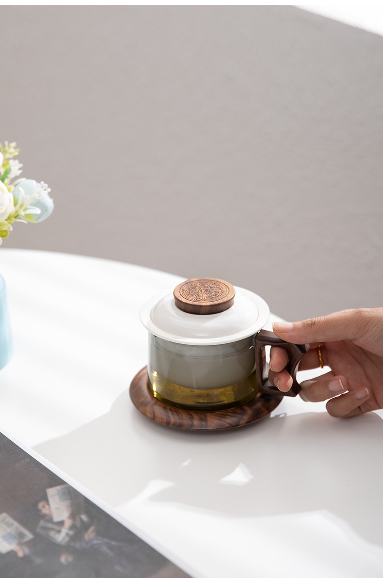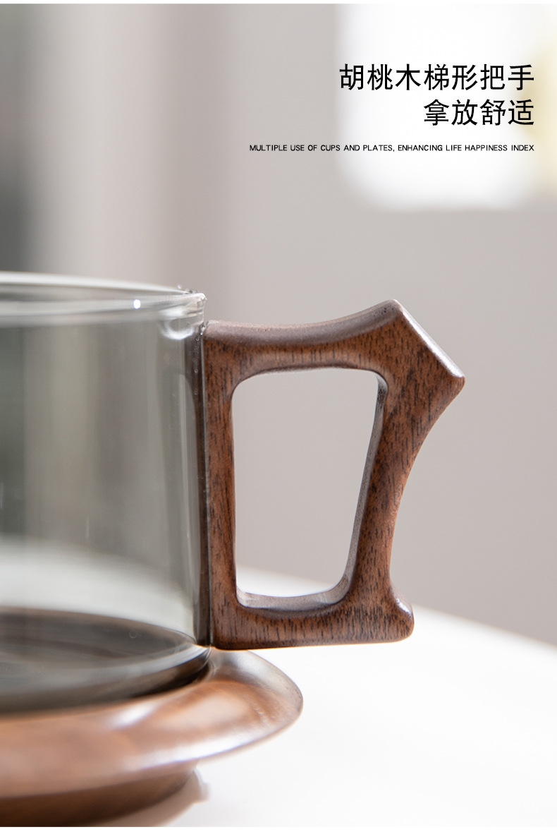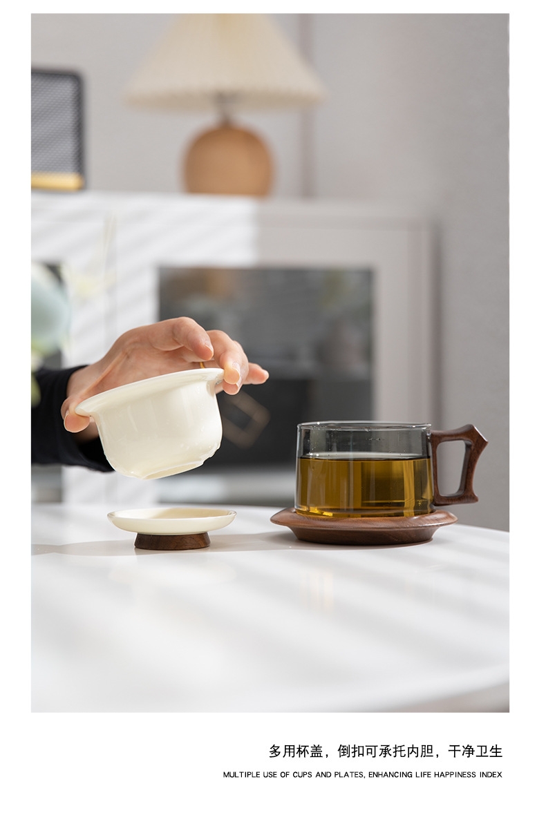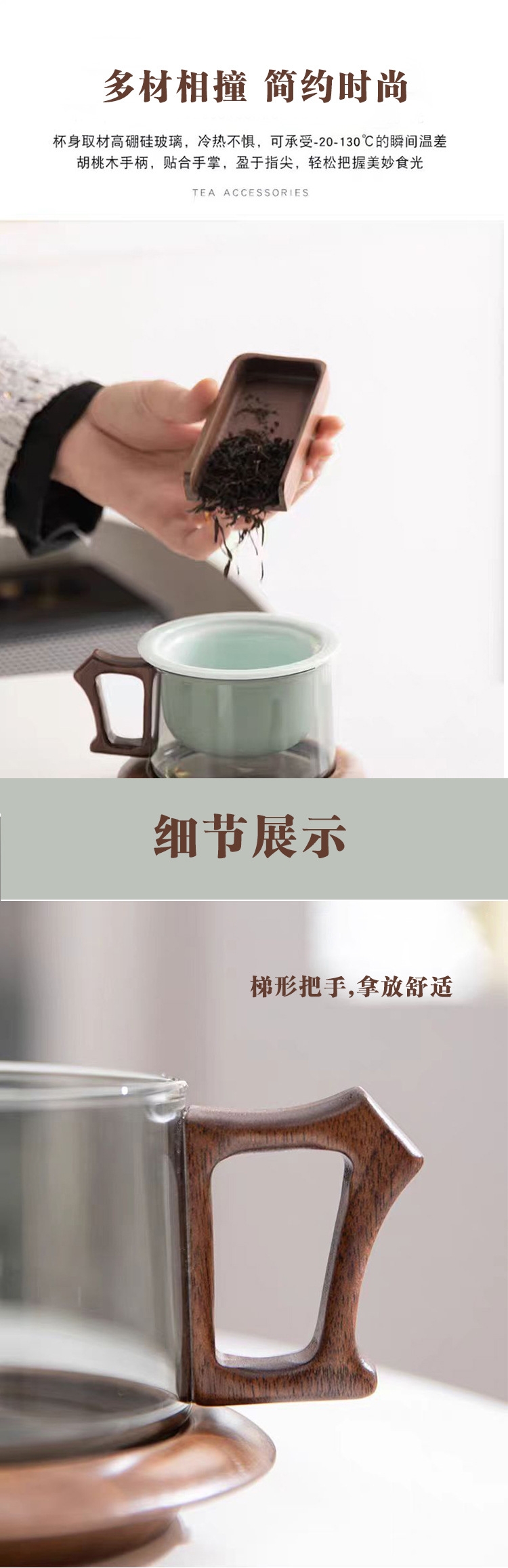 茶咖两用办公杯胡桃木高硼硅玻璃杯