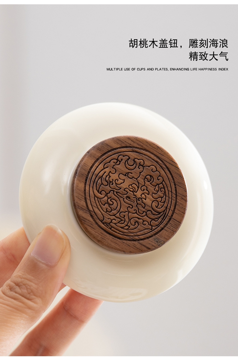材质:高档羊脂玉瓷、胡桃木、 高硼硅玻璃