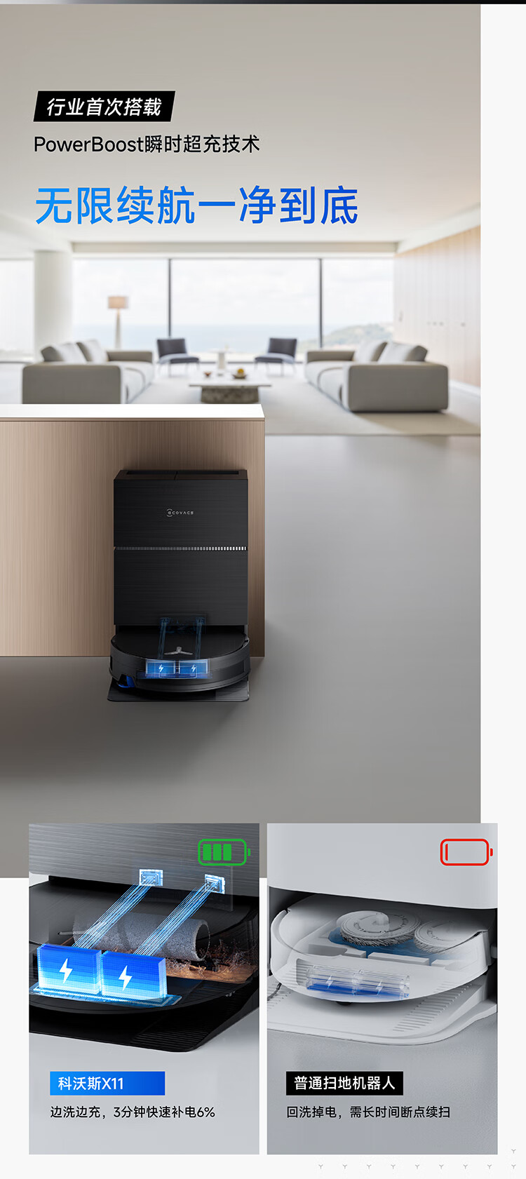 顽固污渍,一滚即净;毛发细尘,瞬吸拔净;无限续航,大户型也能一净到底
