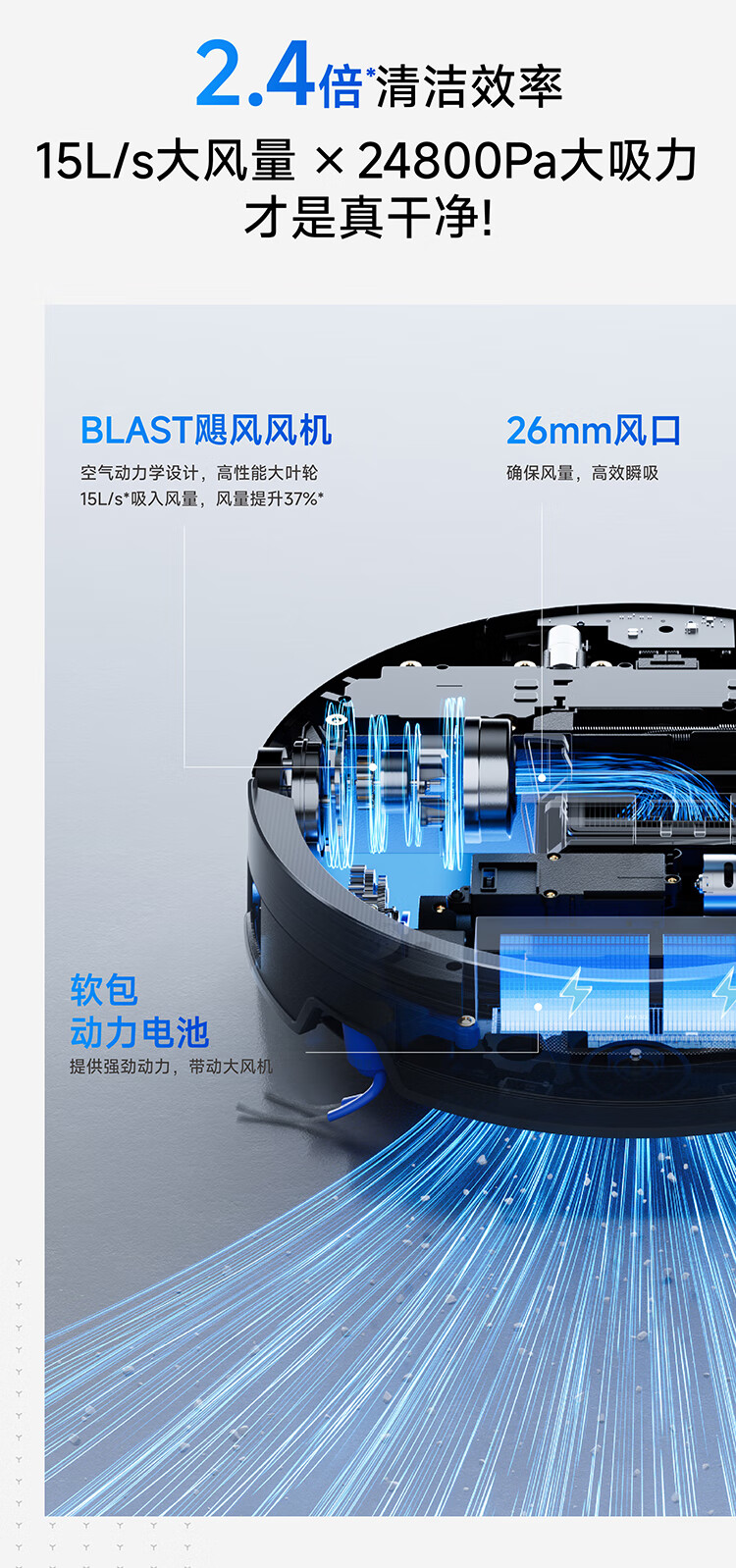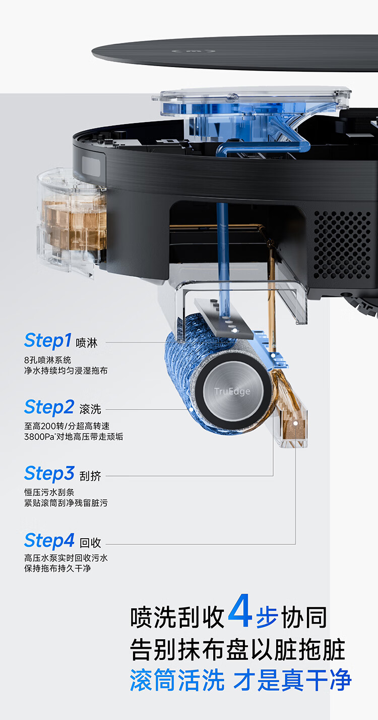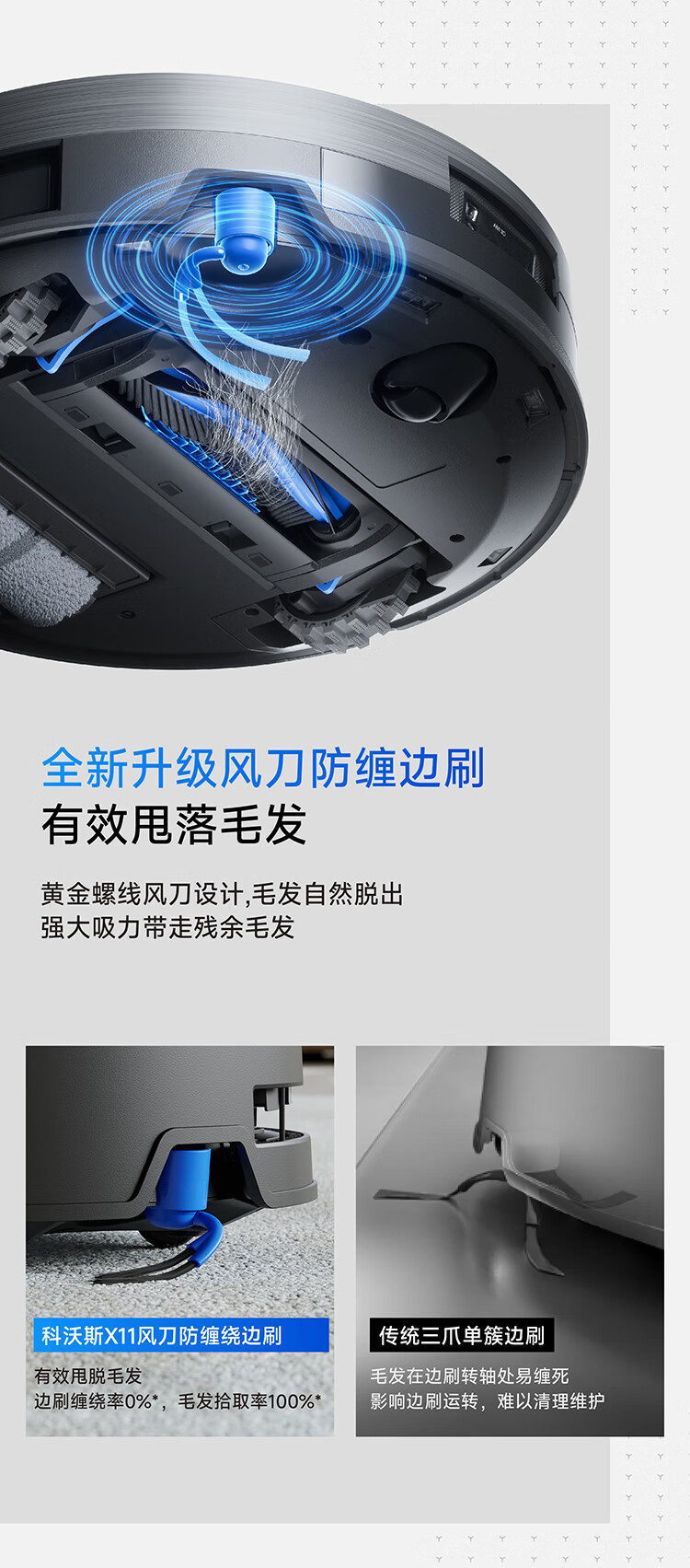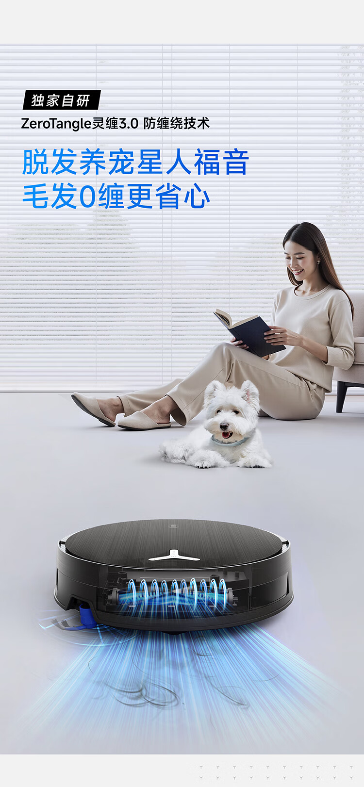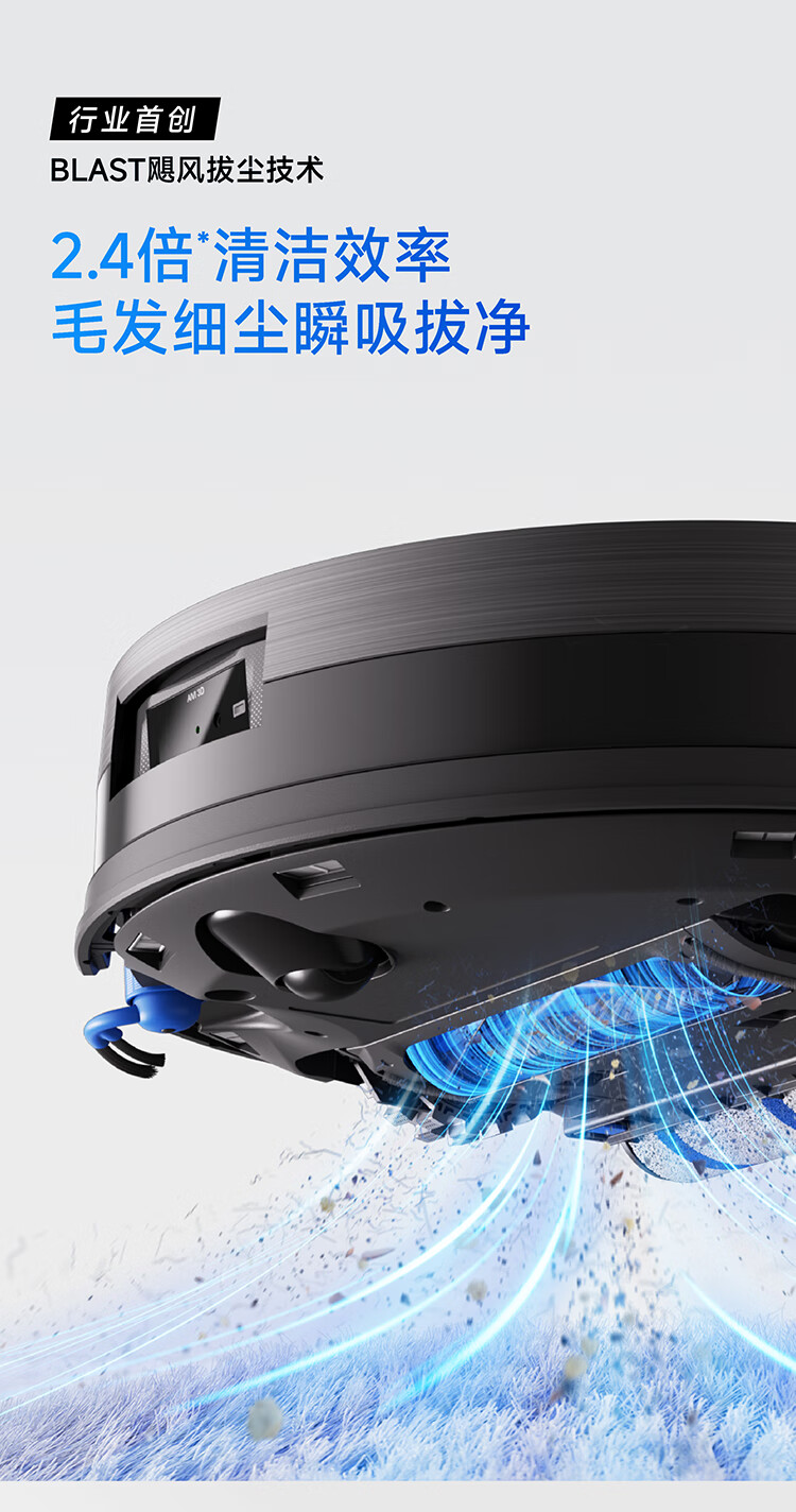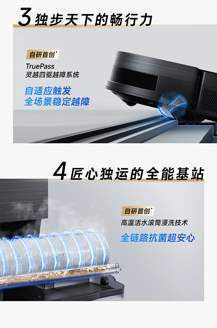 顽固污渍,一滚即净;毛发细尘,瞬吸拔净;无限续航,大户型也能一净到底