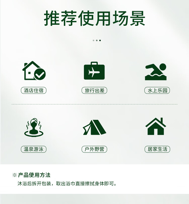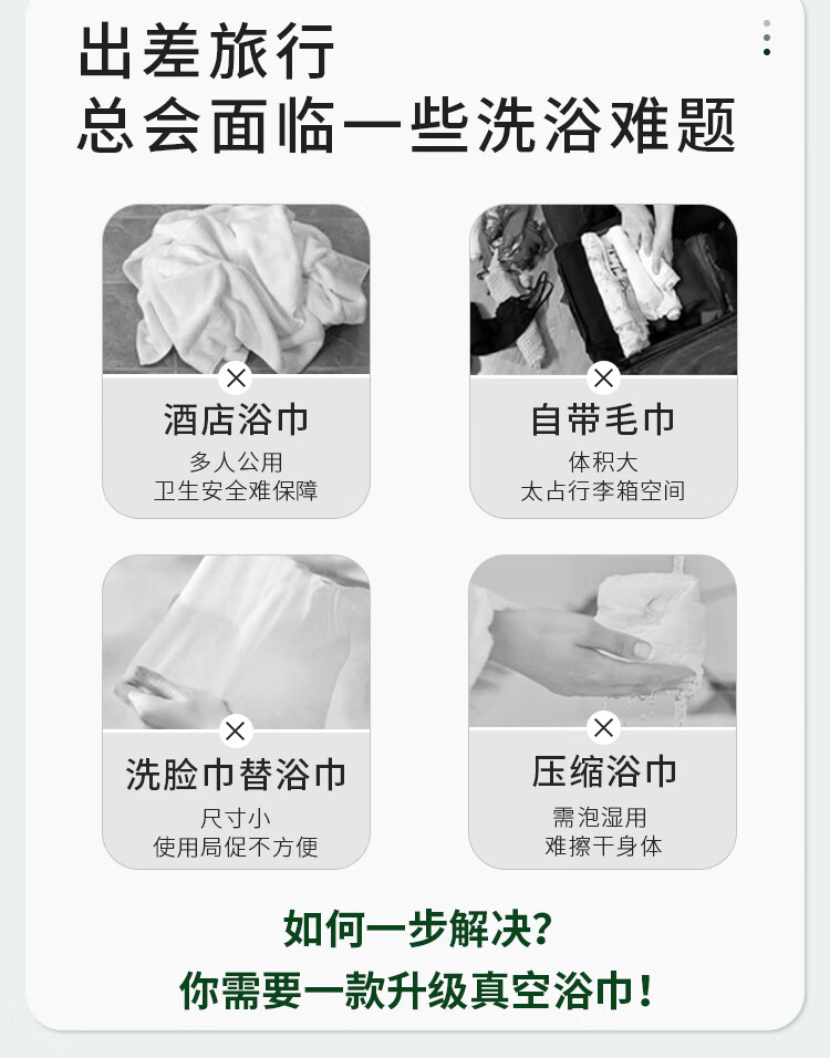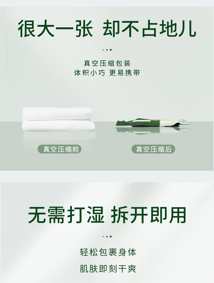 真空浴巾,呵护您的娇嫩肌肤;真空便携,拆开即用,干净卫生;超大尺寸,全身包裹