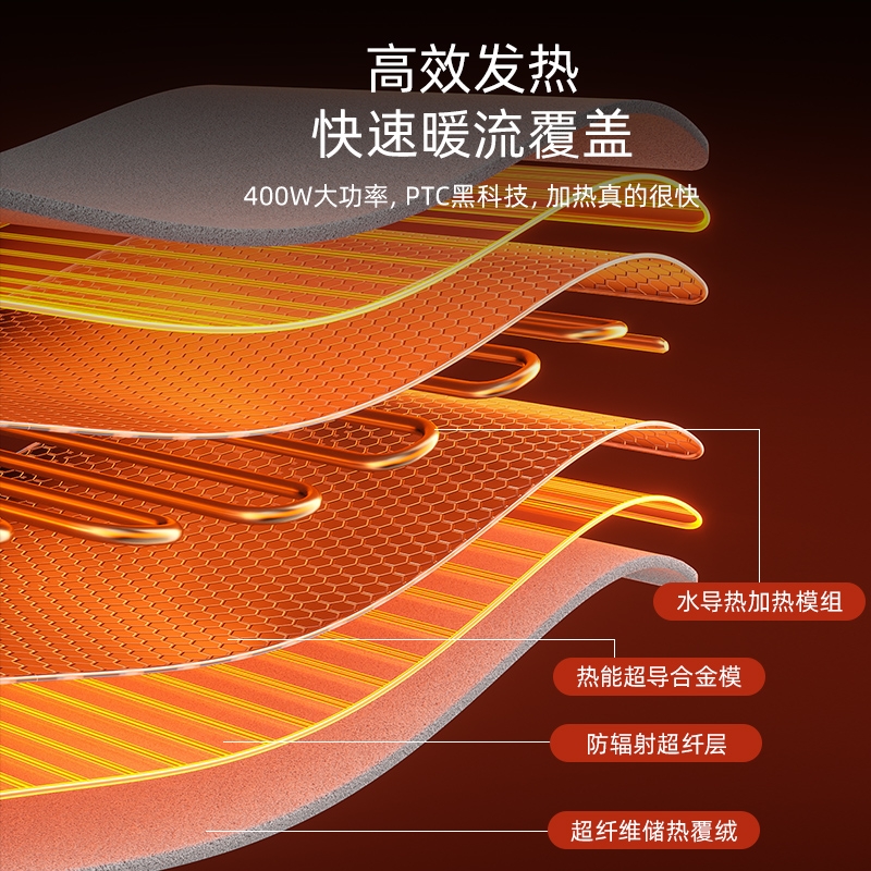 水电分离 安全不漏电;持久恒温可整晚使用,不上火!不干燥!;加厚五层锁温 温泉暖流热循环牢牢锁住毯体温度