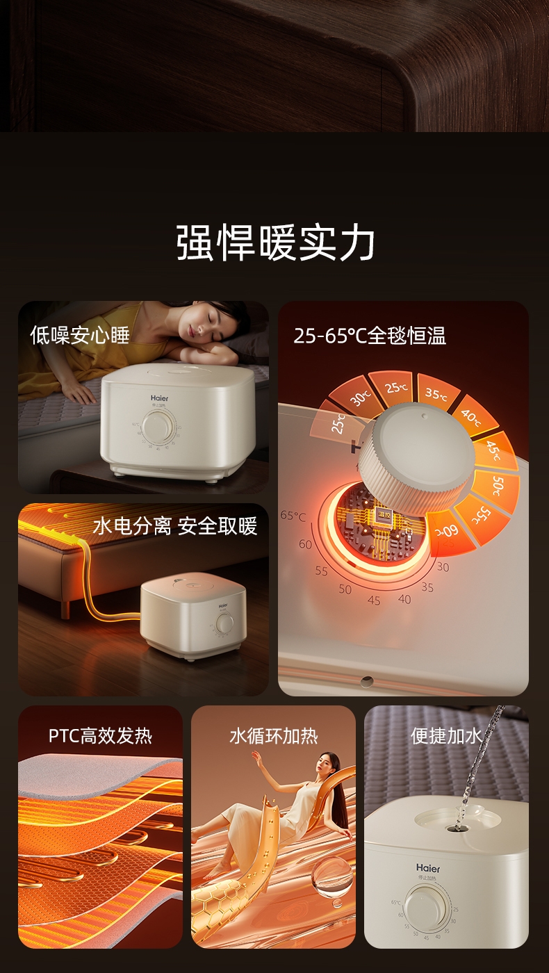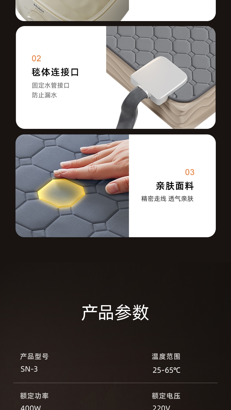水电分离 安全不漏电;持久恒温可整晚使用,不上火!不干燥!;加厚五层锁温 温泉暖流热循环牢牢锁住毯体温度