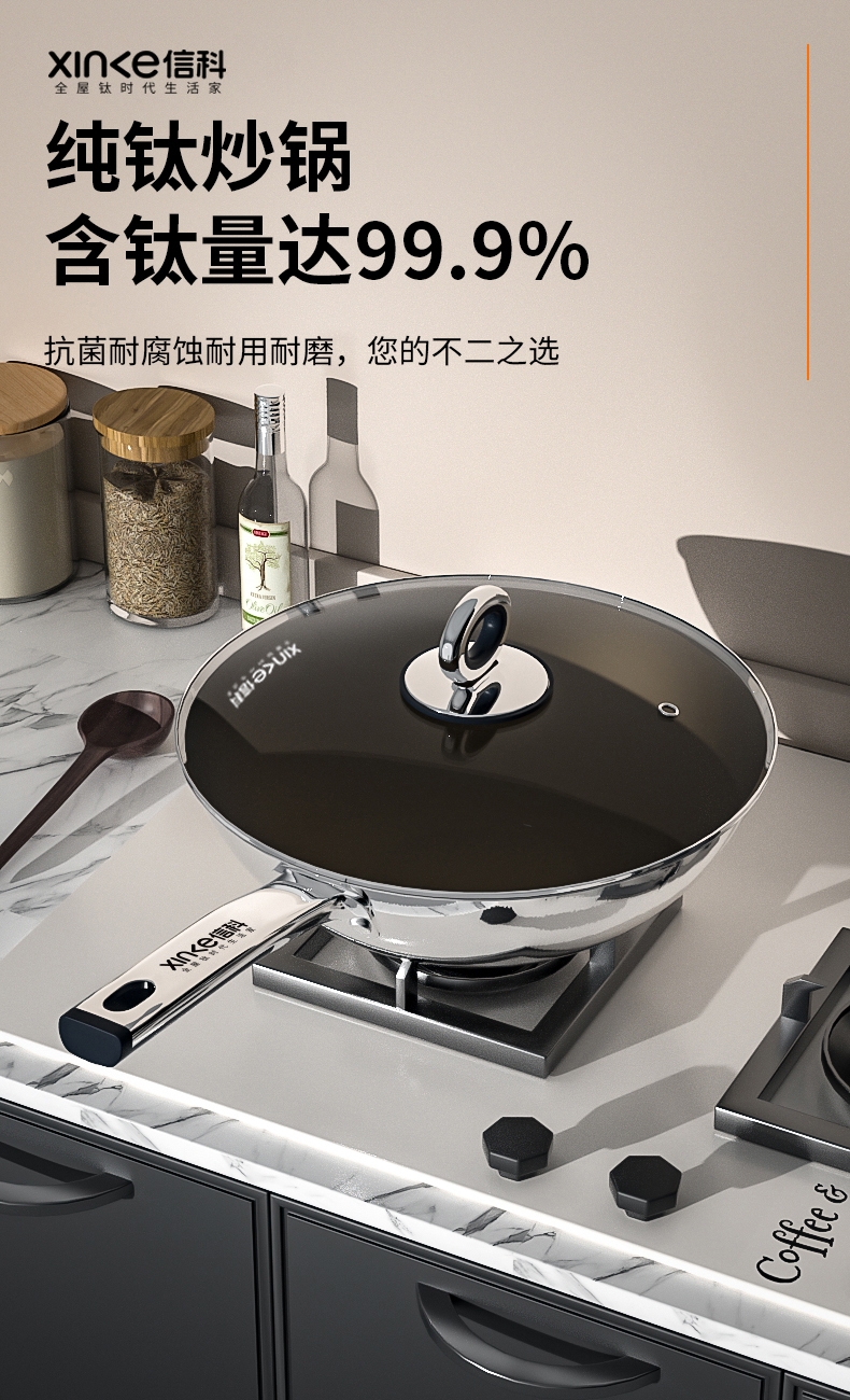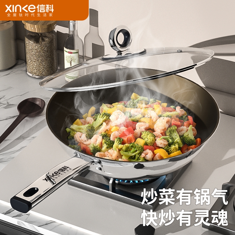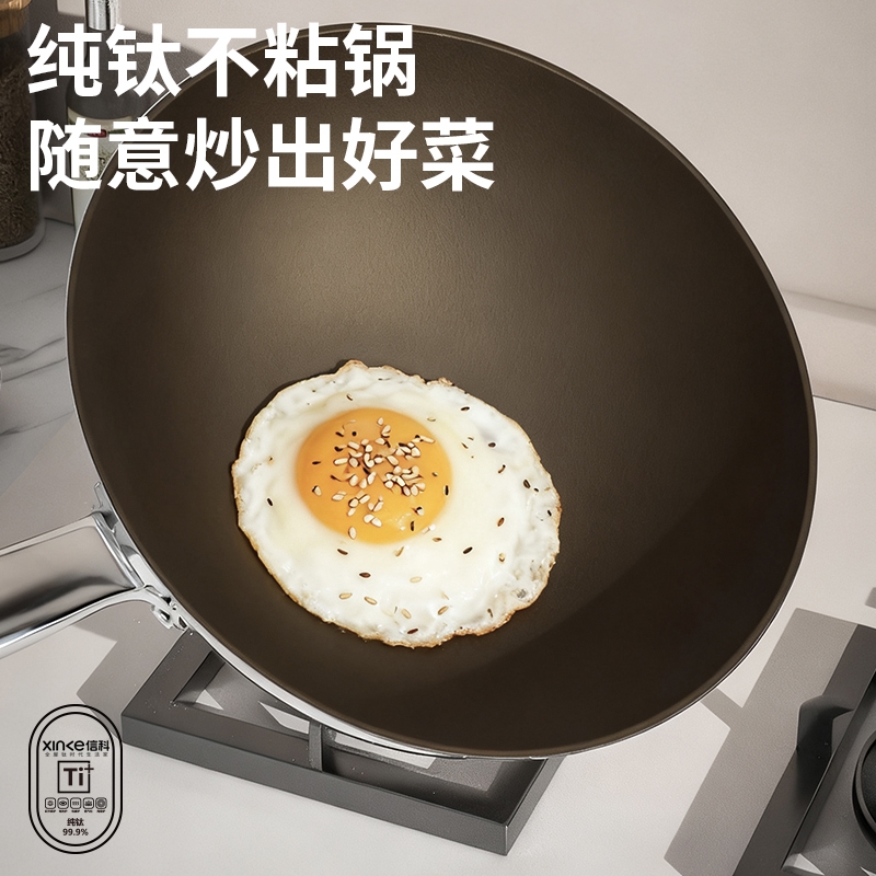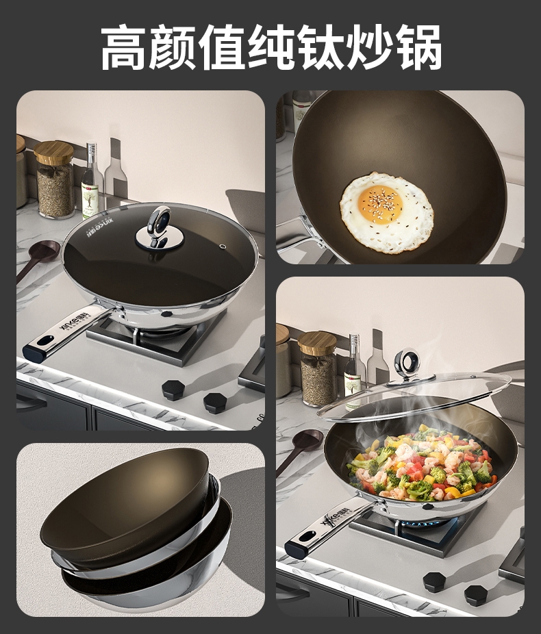 无涂层钛炒锅 0图层放心炒;有钛无涂层持久不粘;新升级抗菌 持久守护99.99% 强力抗菌