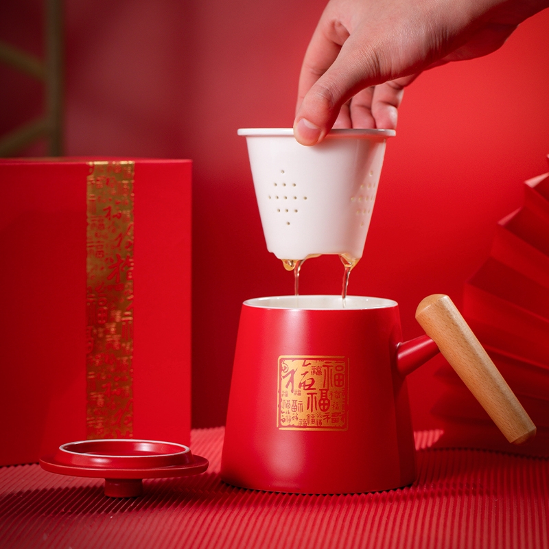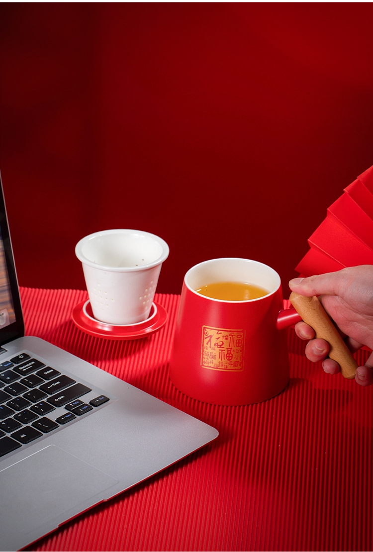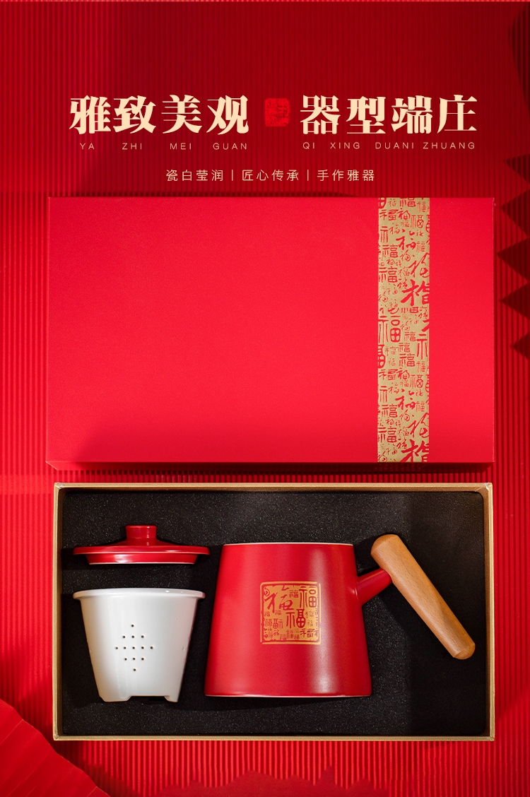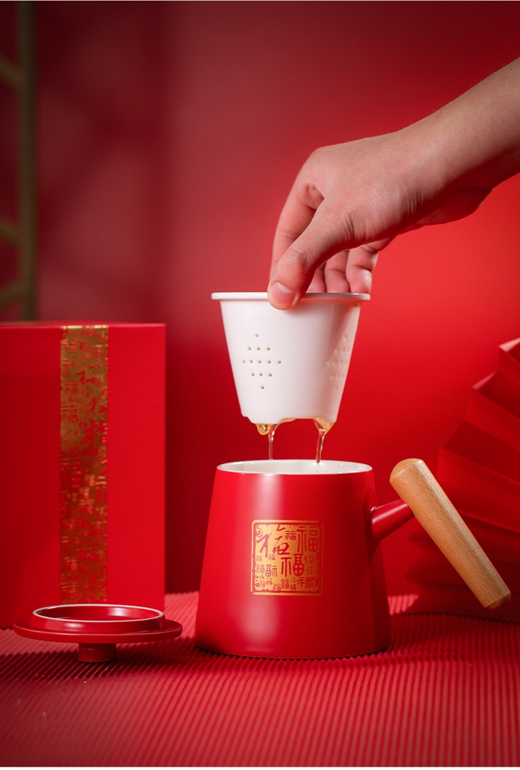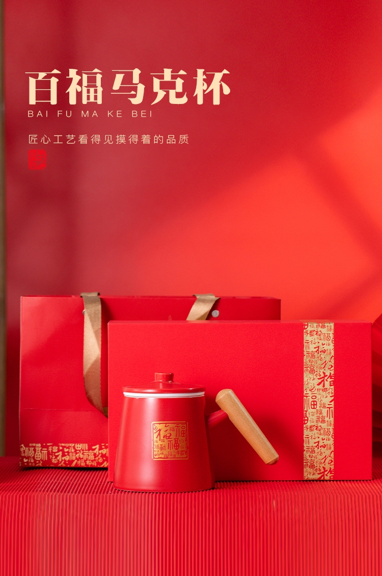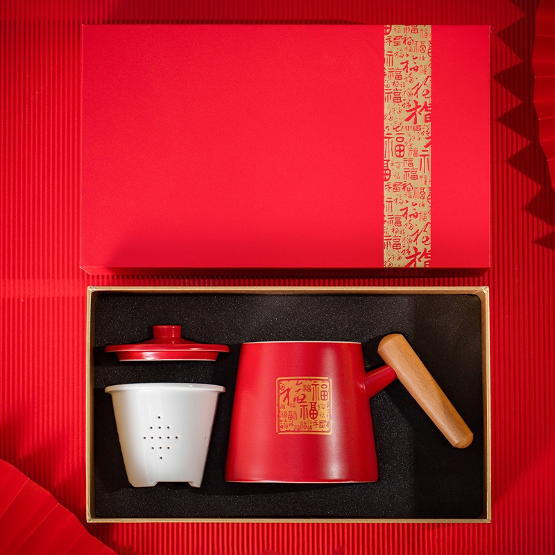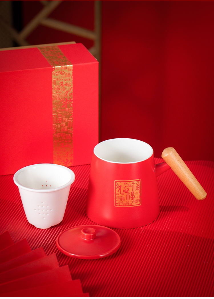 哑光马克杯;百福红色礼盒;茶水分离杯