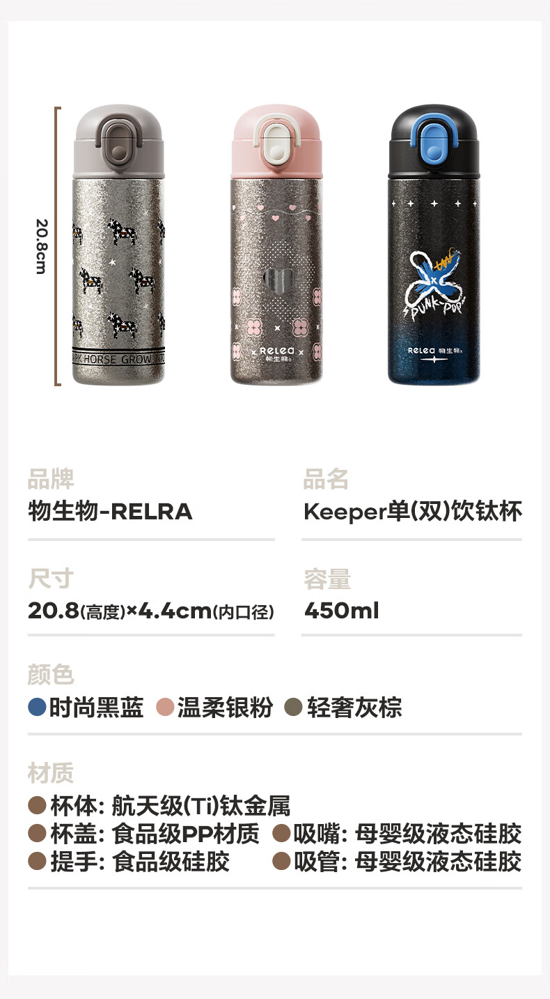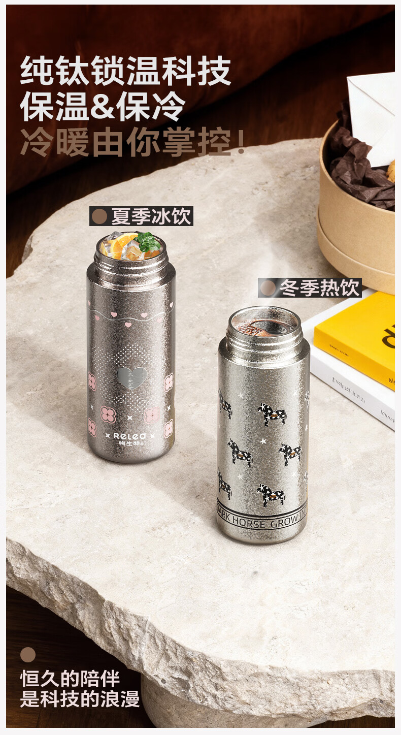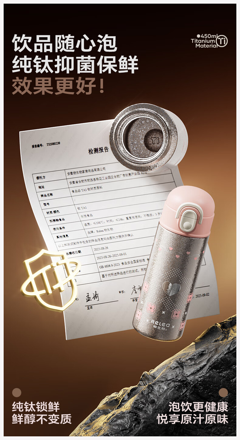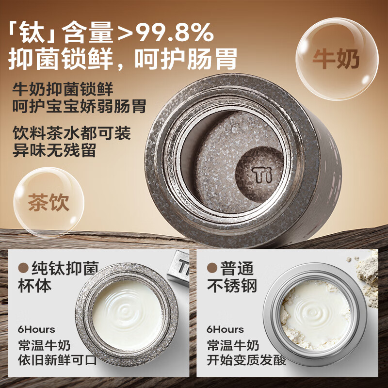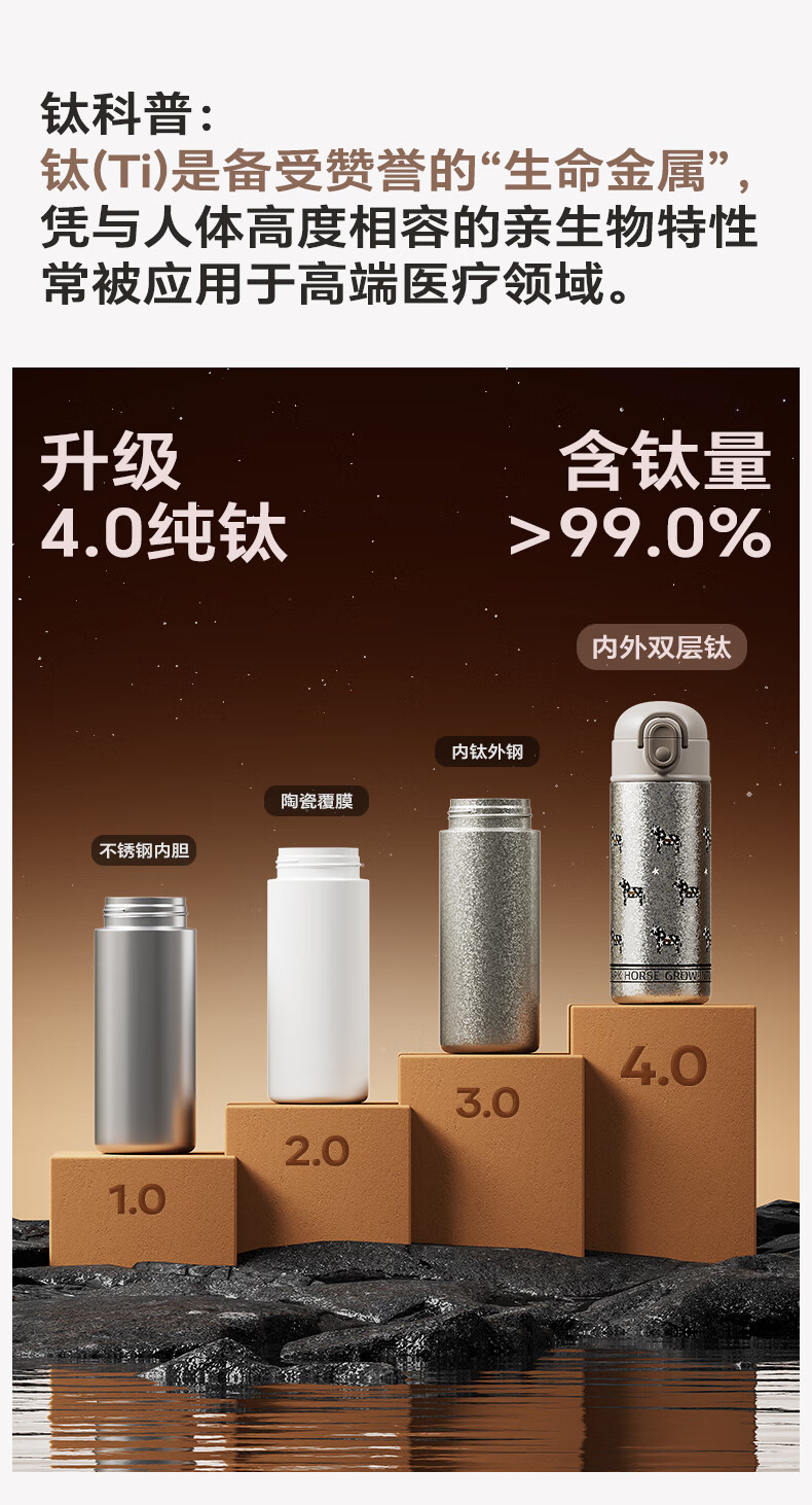 纯钛内胆,抑菌锁鲜;免开盖接水,方便快捷;直饮/吸管一杯双饮,冷热随心