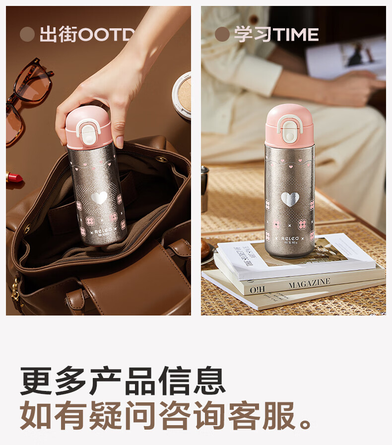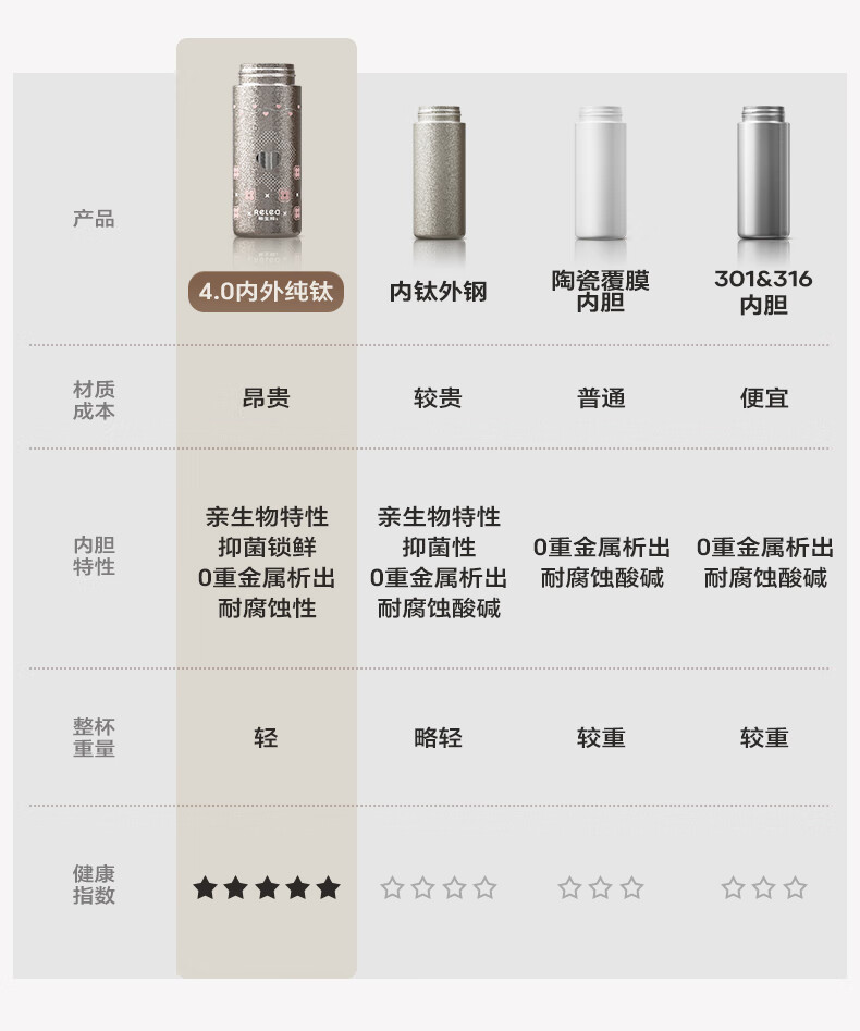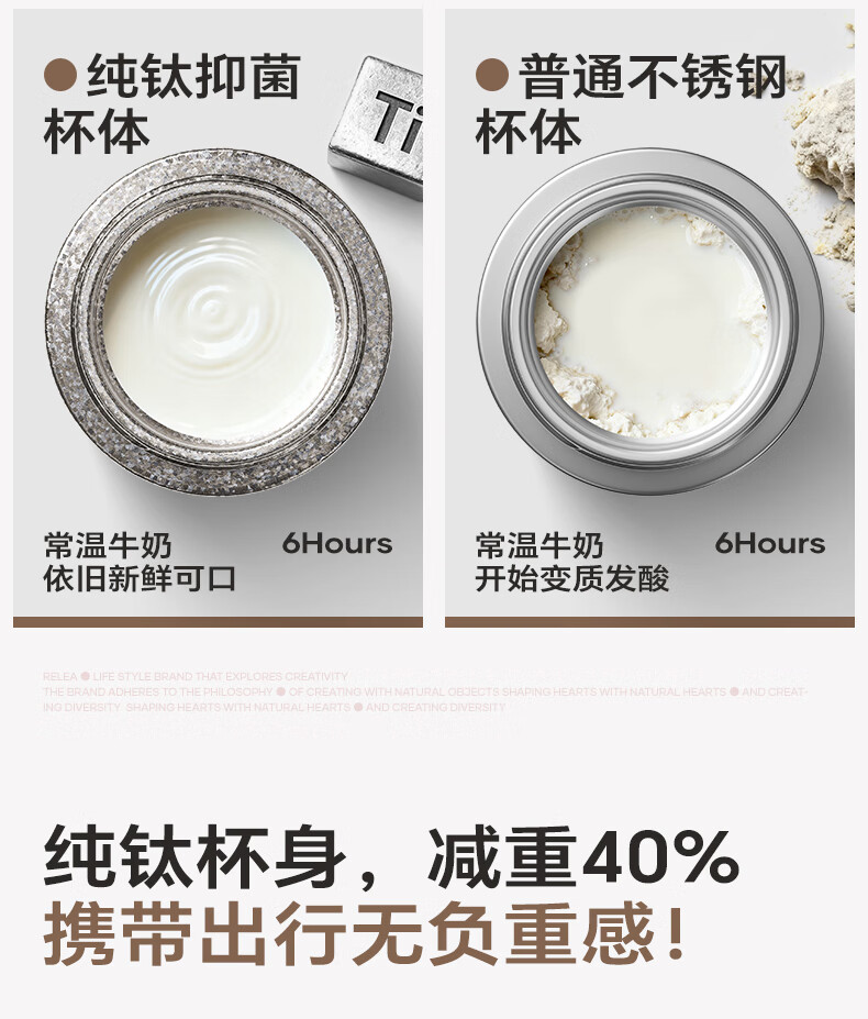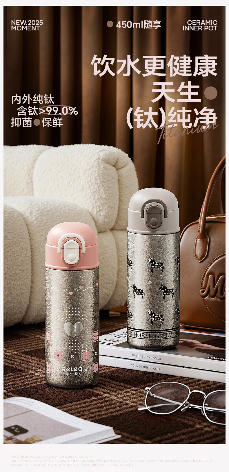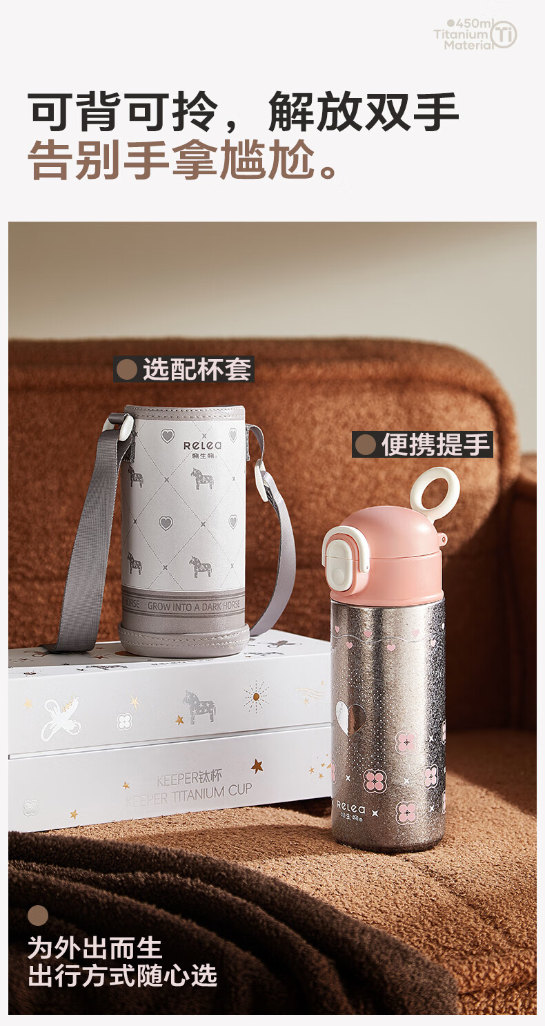 纯钛内胆,抑菌锁鲜;免开盖接水,方便快捷;直饮/吸管一杯双饮,冷热随心