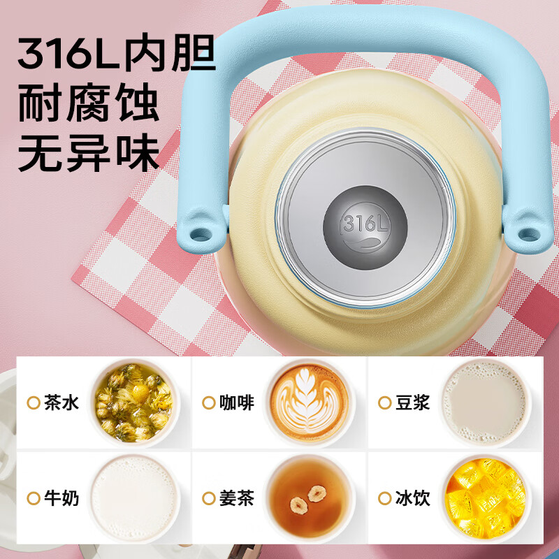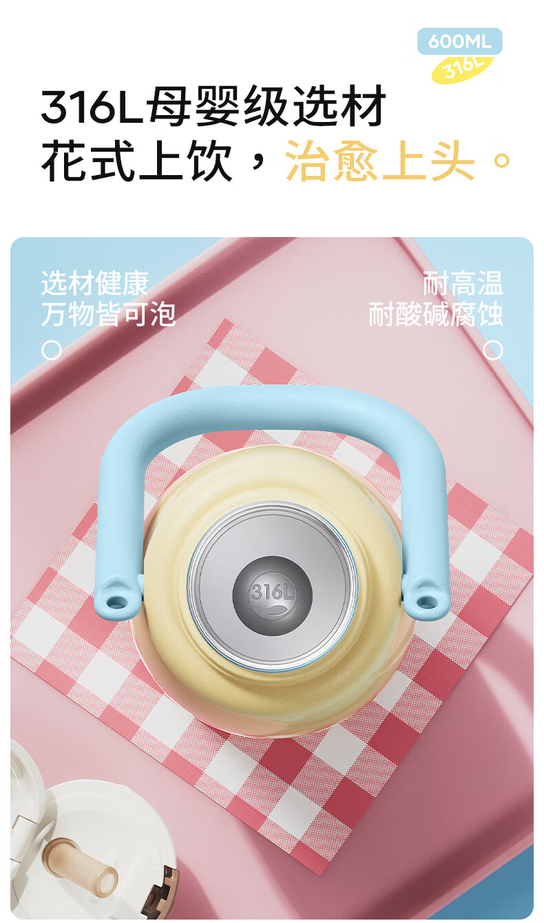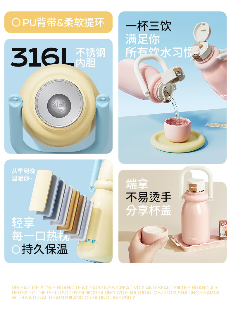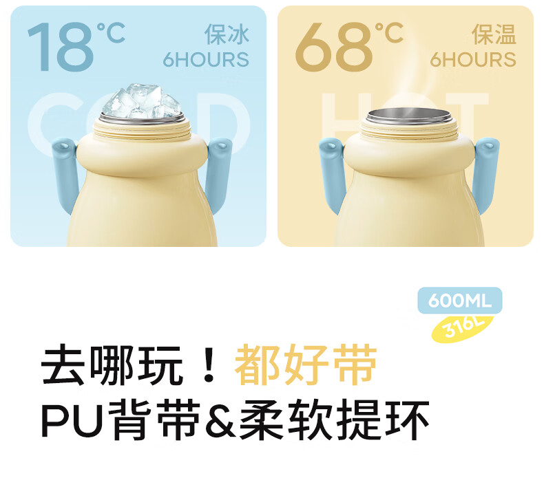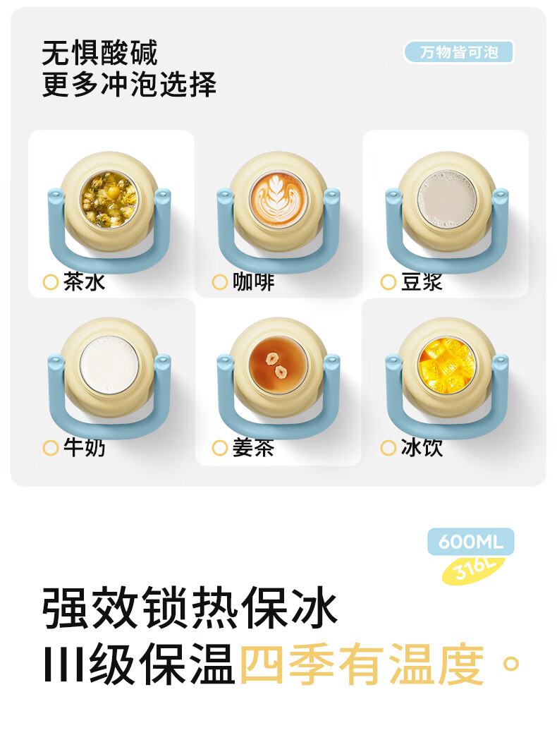 316L不锈钢,健康环保;一杯三饮,满足需求;加粗提手,手感舒适