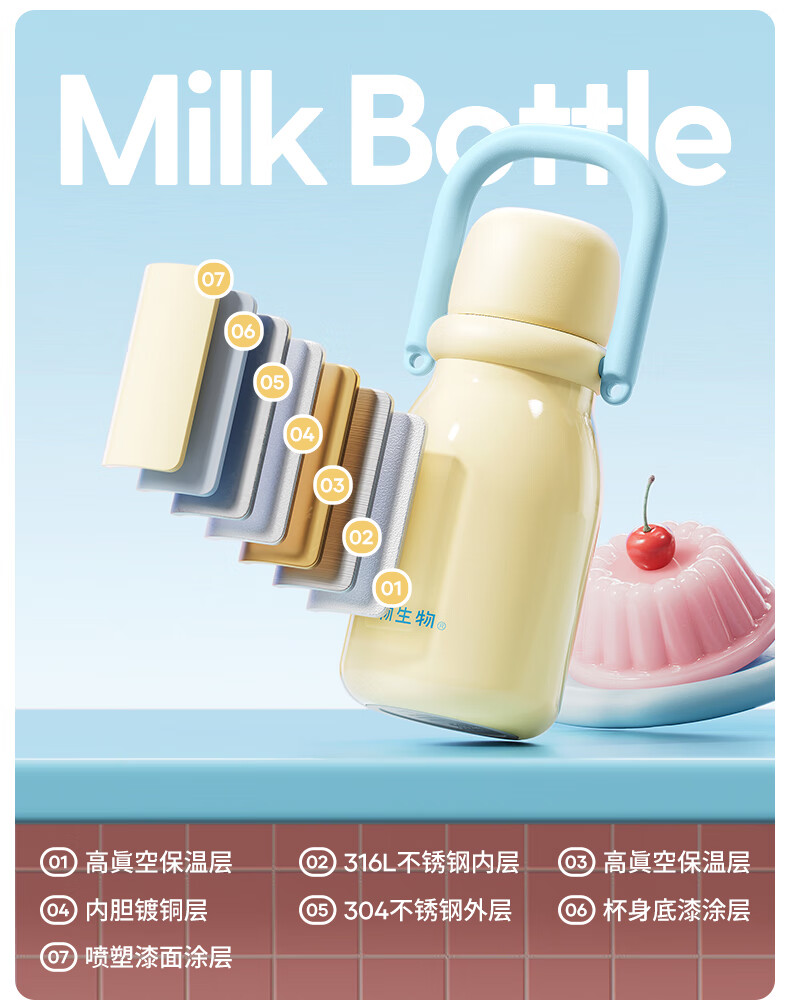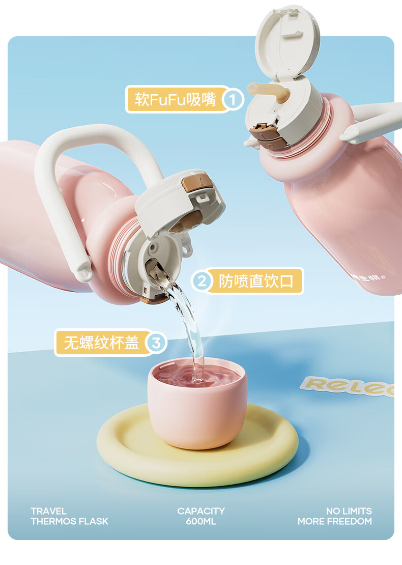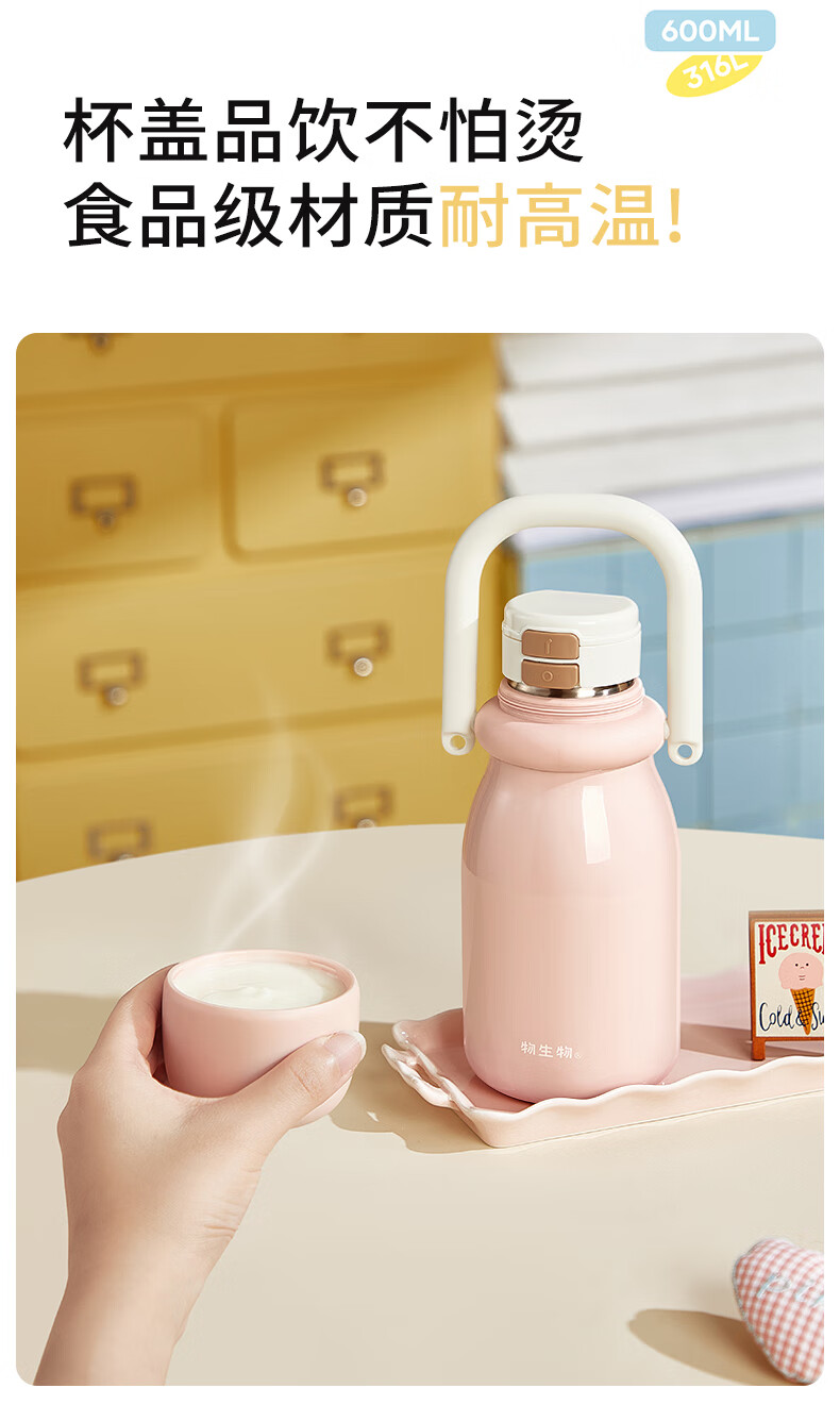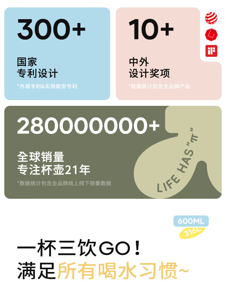 316L不锈钢,健康环保;一杯三饮,满足需求;加粗提手,手感舒适