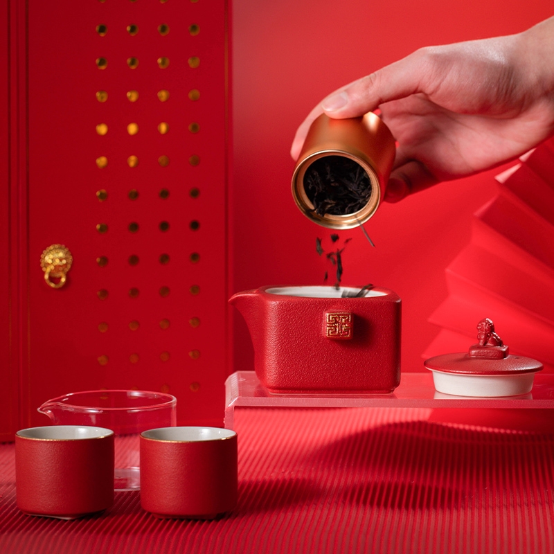 燚器 奉旨发财户外旅行茶具一壶四杯