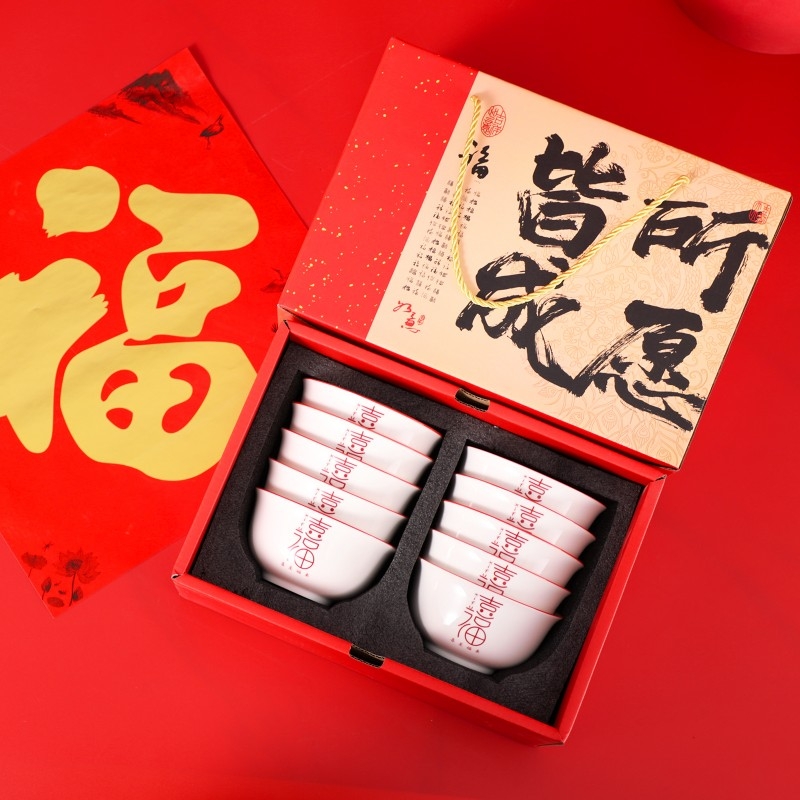 十碗盛三餐喜味,一贴迎满室福来;这十只碗,让日子的美好从‘十全十美开始;这十只碗盛的是三餐烟火,藏的是十全十美的好福气!;精美礼盒搭配高质量陶瓷碗再配上福字贴节日气氛满满的;福字入户,皆成所愿 —— 这一瓷,把美满日子端进家