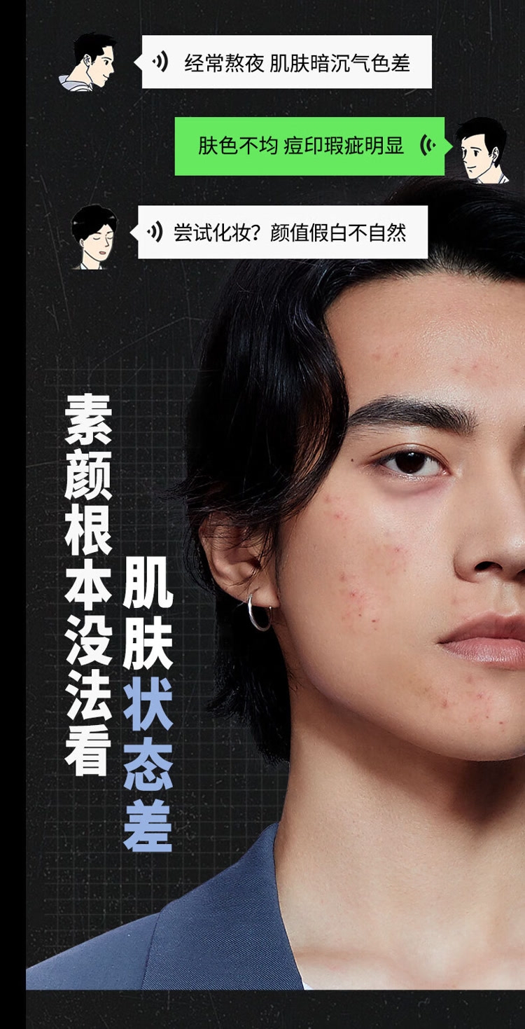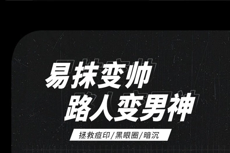 易抹变帅,自然遮瑕不假白;轻薄质地,妆效持久;控油净黑头,清洁油痘肌,水润不紧绷