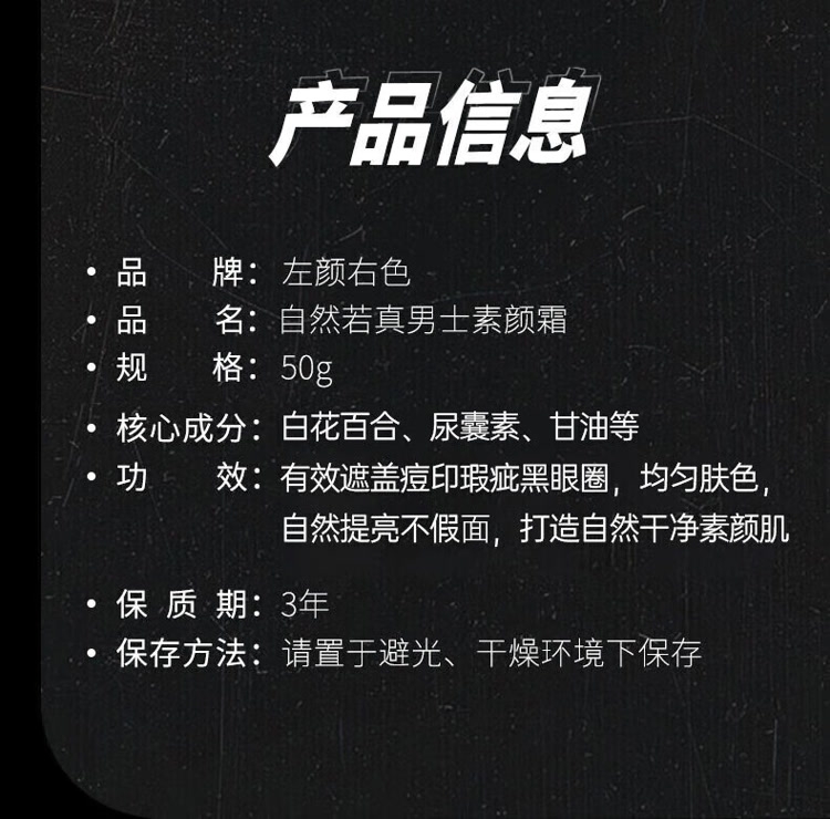 配置清单:左颜右色自然若真男士素颜霜50g 左颜右色微酸洁面乳150g