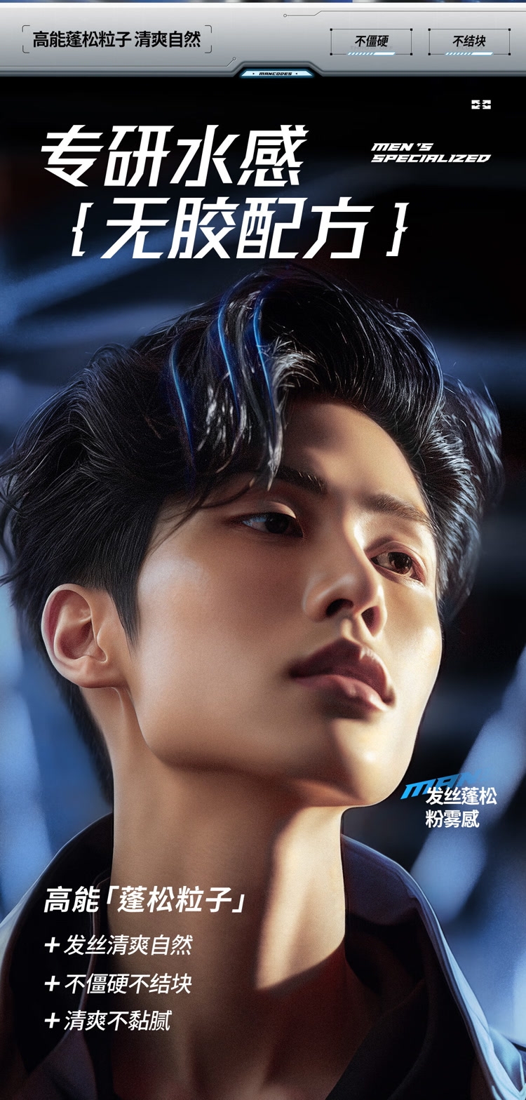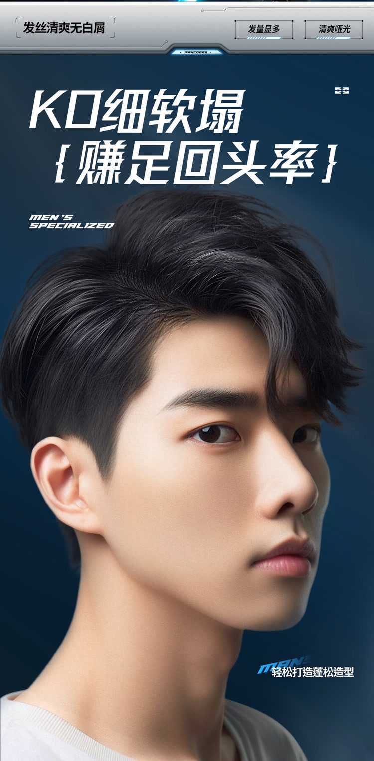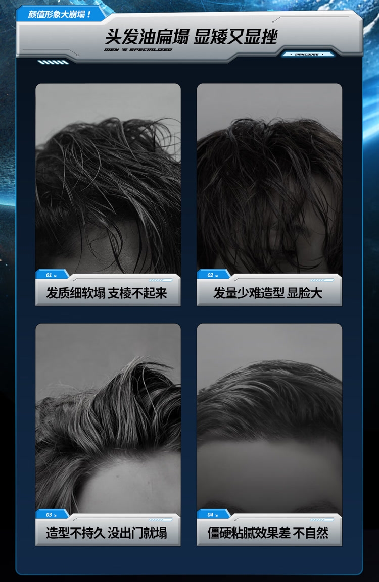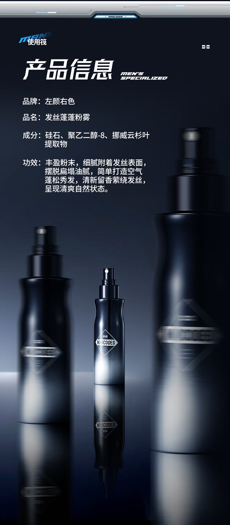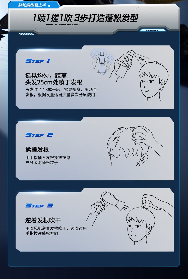 更适合男士出油暗沉肌肤使用;皂氨复配洁面体系,兼具净爽力与温和力;一喷一抓秒蓬松,72h强定型