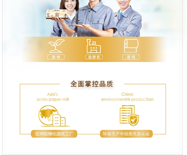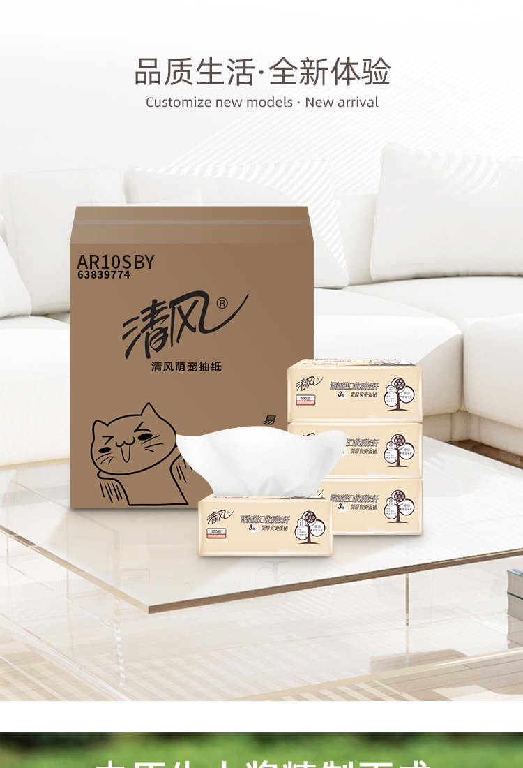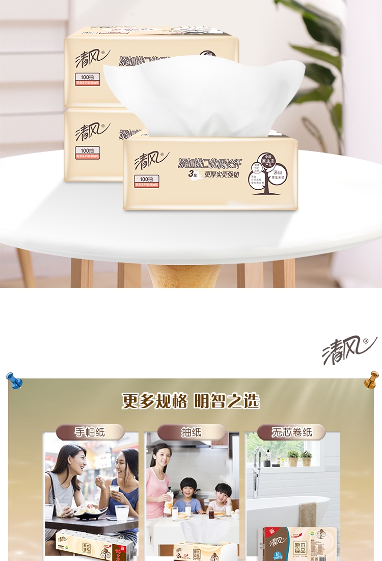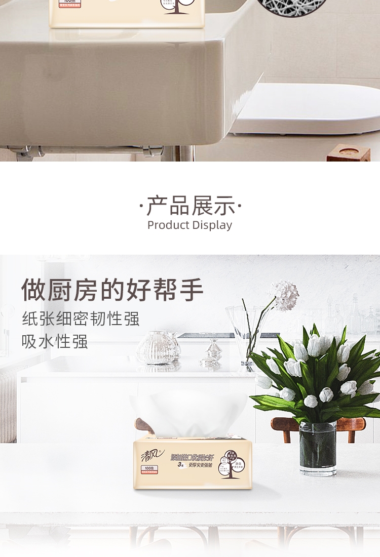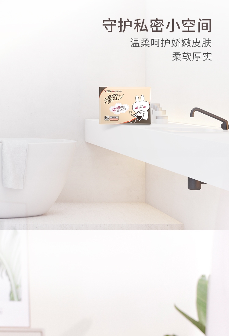 蓬松舒软,纸感细腻,棉柔亲肤;湿水不易破,吸水力UP,多场景安心使用.;不含可迁移性荧光物质, 源于纯净,归于健康