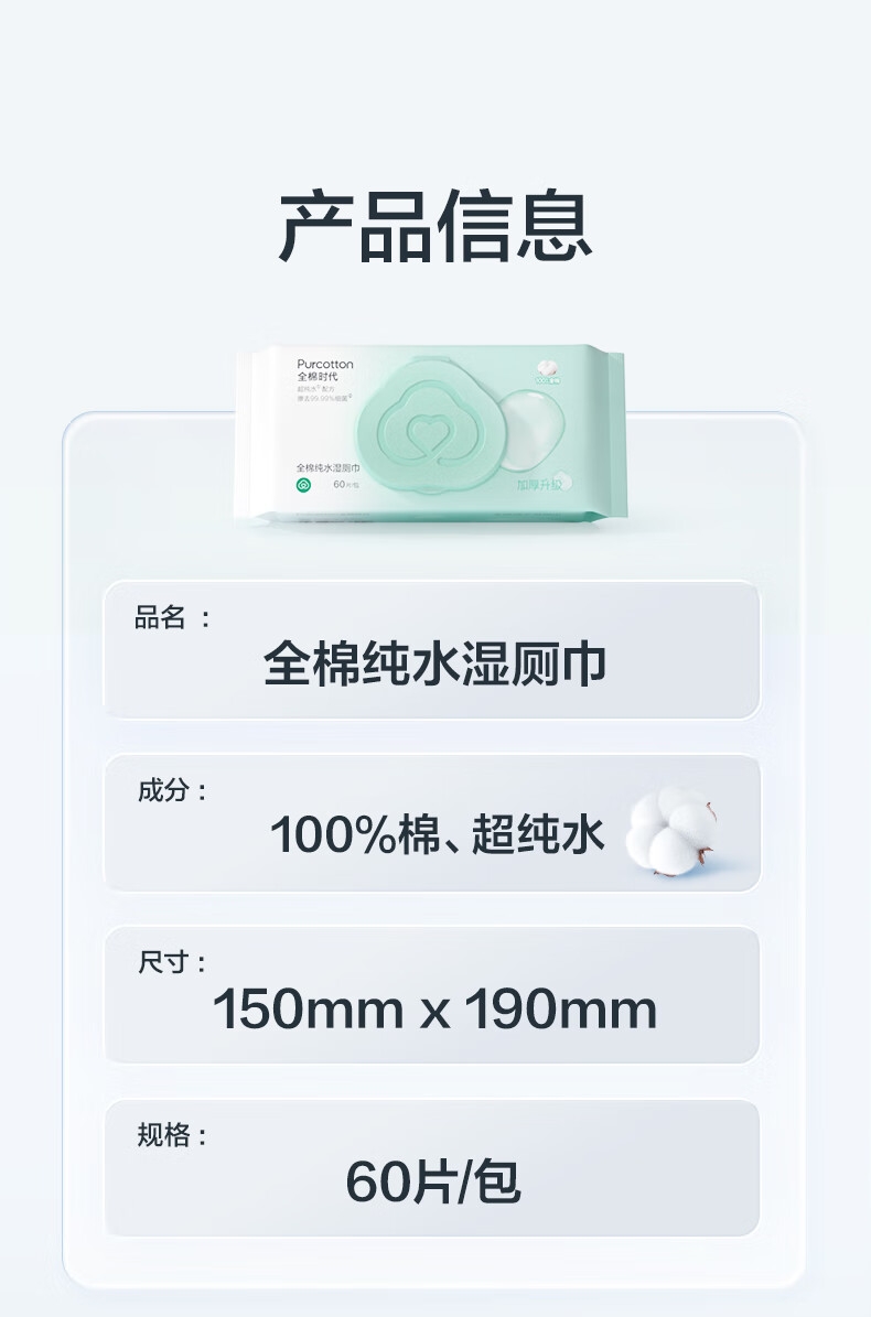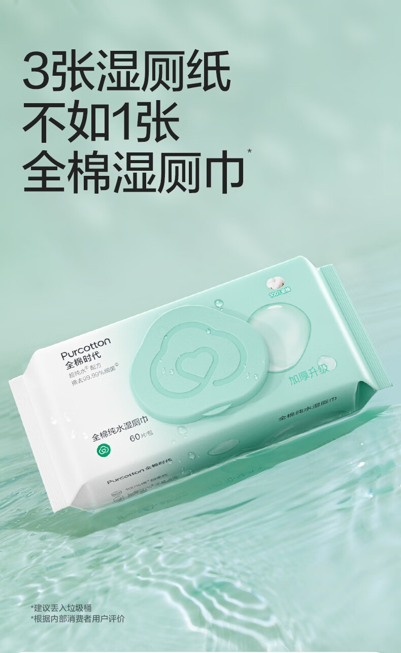 全棉时代 纯水湿厕巾60抽*1包PPC24700004