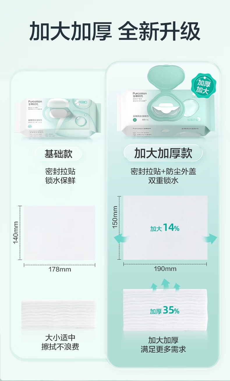 加大加厚,满足更多需求;100%棉更耐撕;不易掉絮