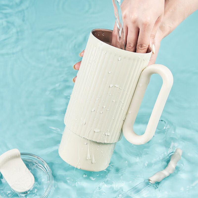 产品材质:杯身内胆:316L奥氏体不锈钢;杯身外壳:304奥氏体不锈钢; 密封圈、螺孔塞、翻片、吸嘴:硅橡胶; 杯盖、茶漏:改性PCT(TRITAN); 把手、吸管:聚丙烯(PP)