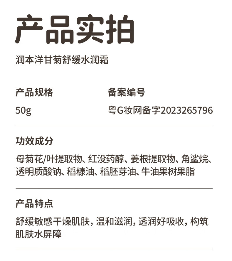 舒缓敏感干燥肌肤;温和滋润;透润好吸收,构筑肌肤水屏障