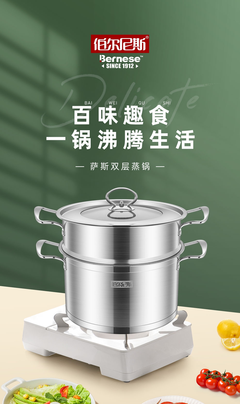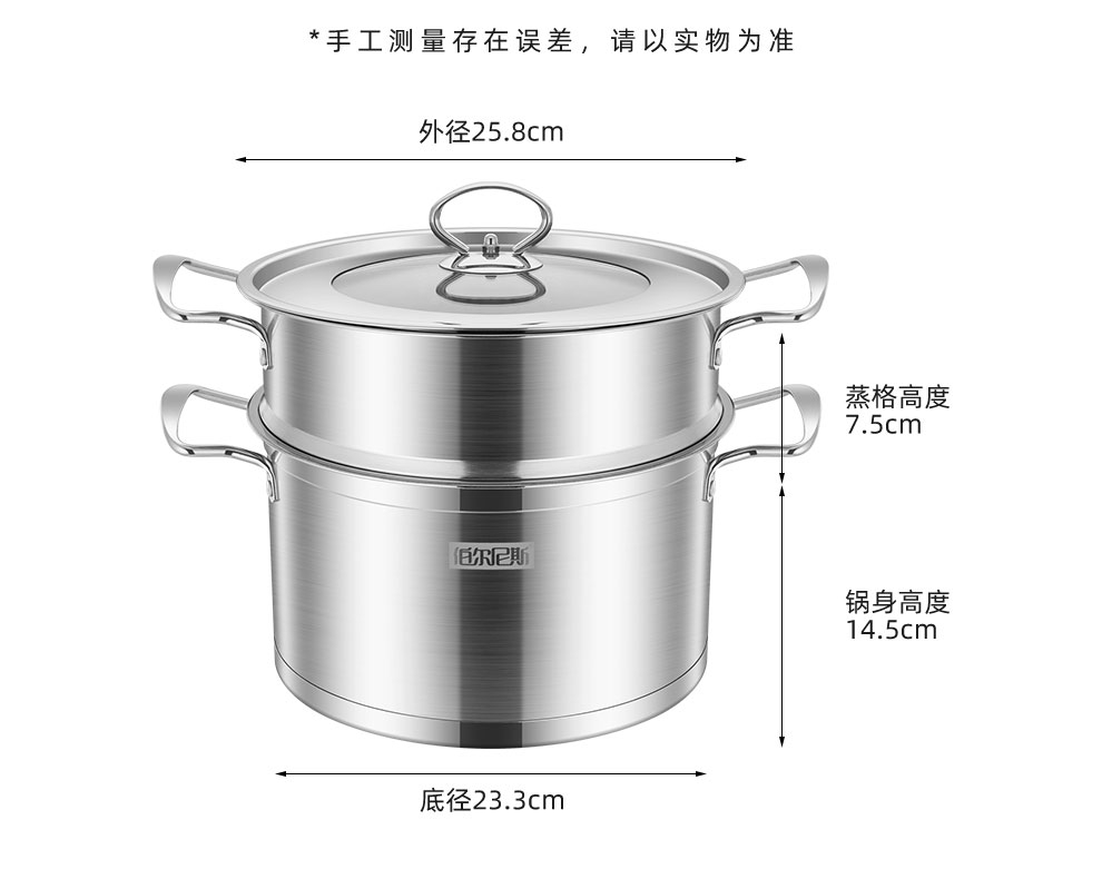 伯尔尼斯 萨斯蒸锅26CM加厚不锈钢BENS-161