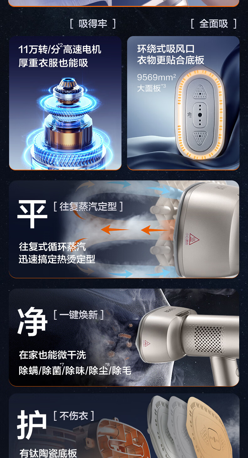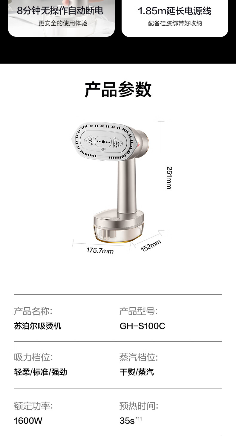 挂烫机手持熨烫机蒸汽电熨斗增压蒸汽;8分钟不工作 自动断电;循环蒸汽 定型
