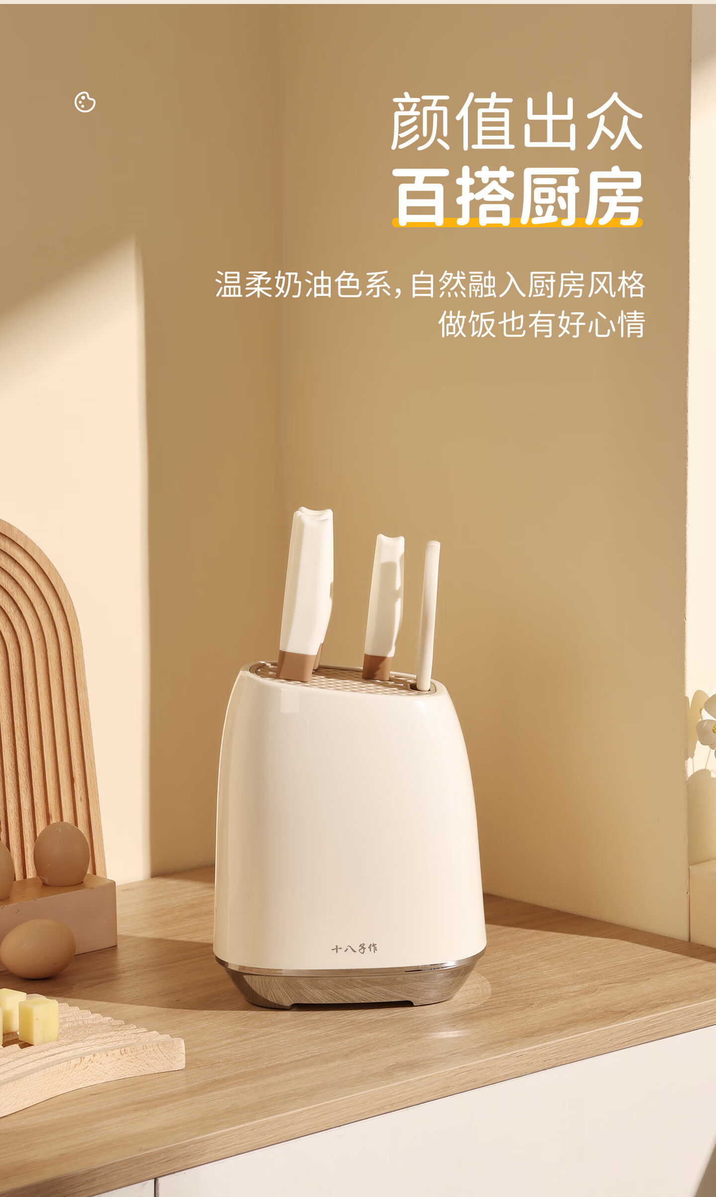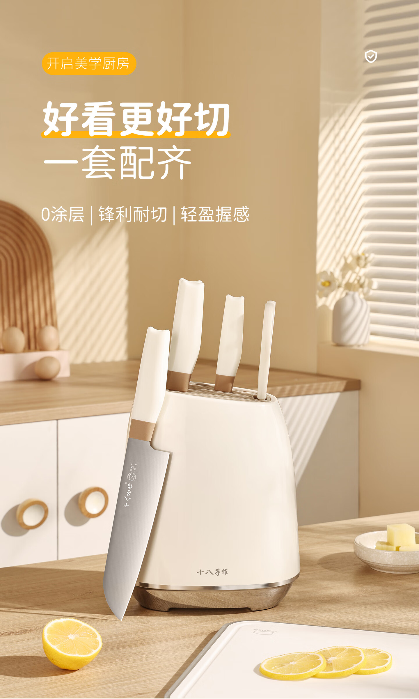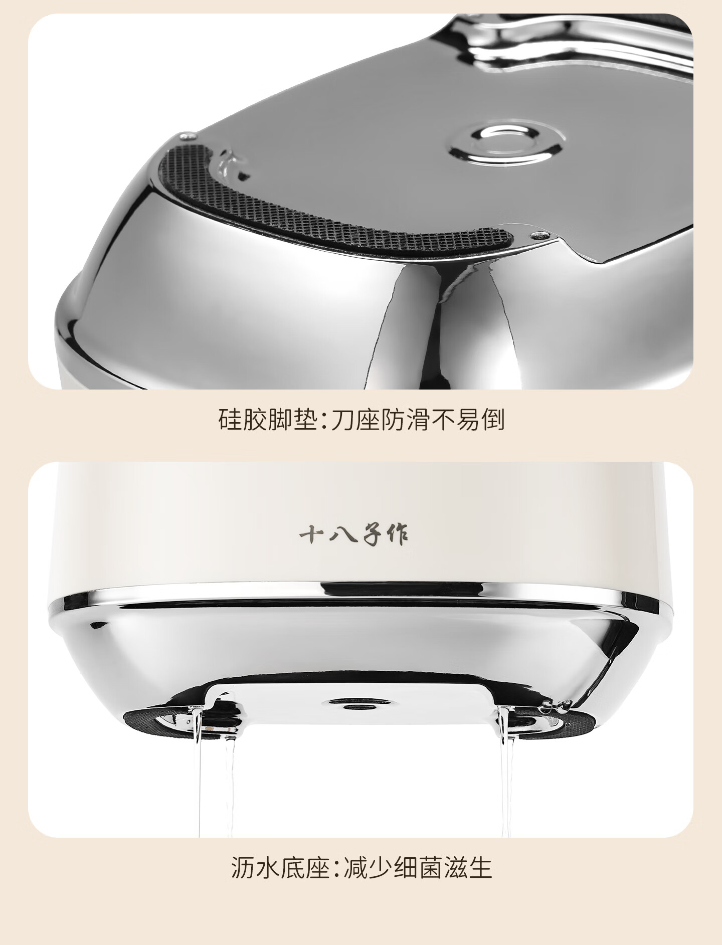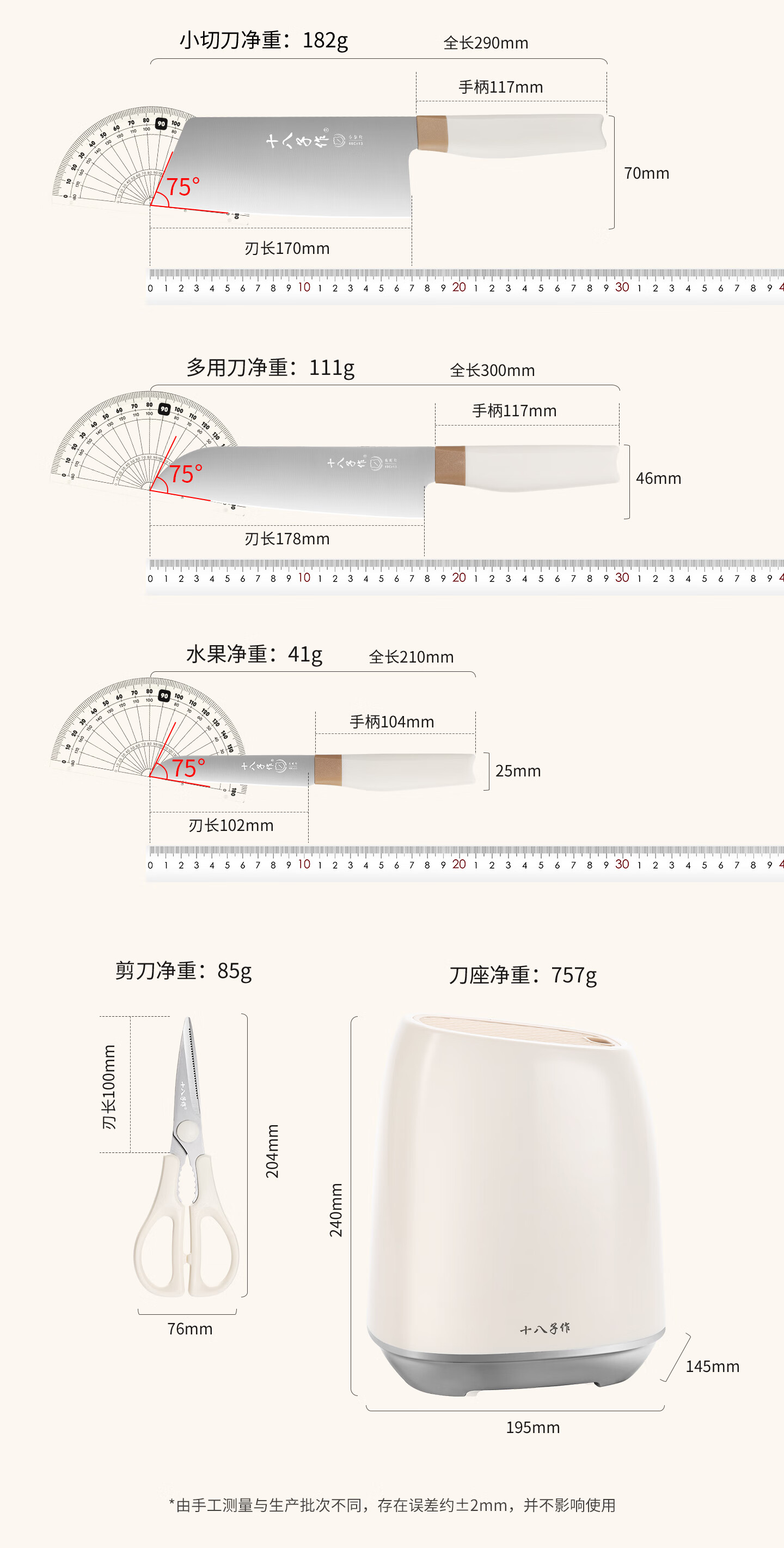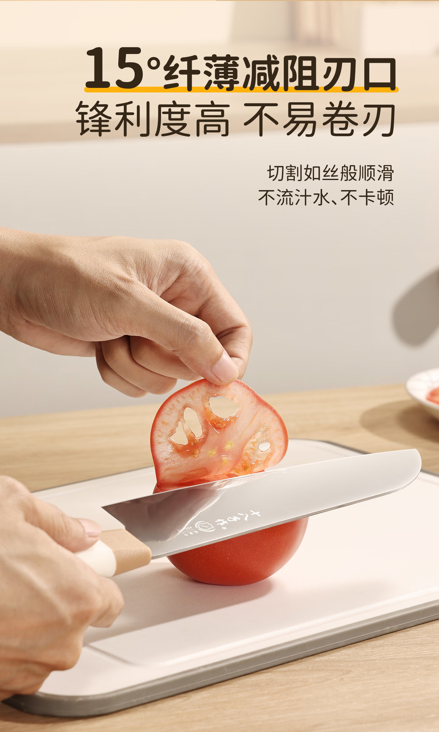 采用40Cr13不锈钢刀身;分体式刀座可拆分冲洗,告别缝隙藏污纳垢;PP食品级材质,轻盈贴合手掌,久握不打滑、不累手