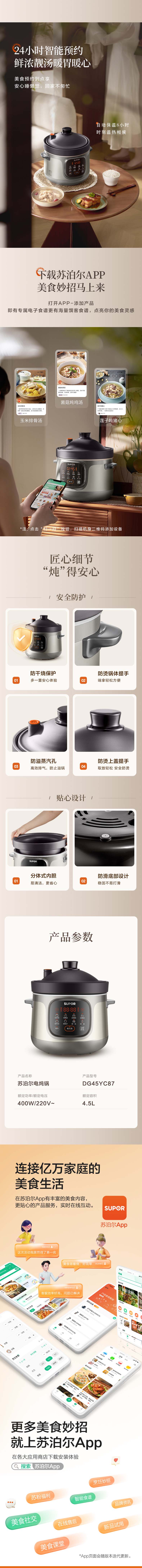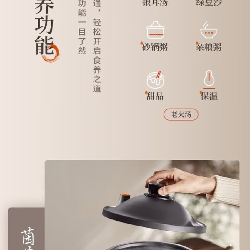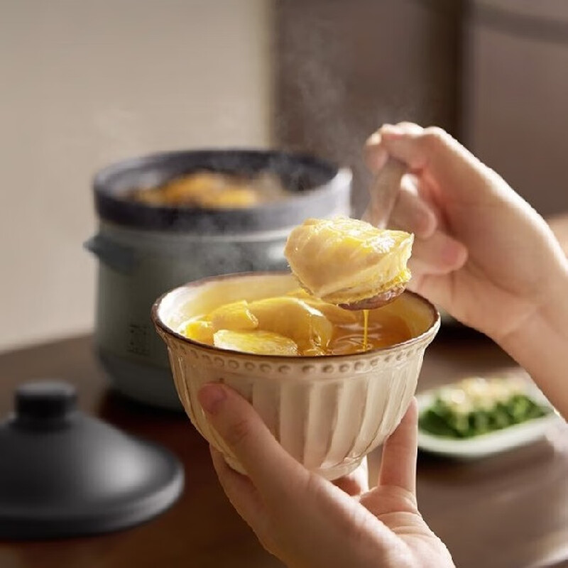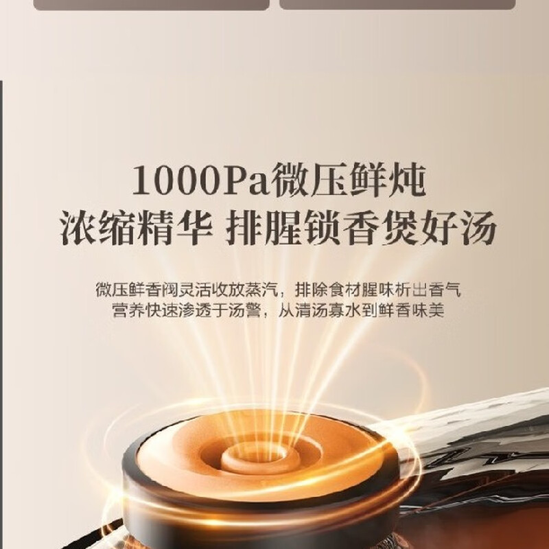 2H 微压鲜炖,省时快一半;聚能直炖加热技术,热量不易流失;400W 大火速热,汤鲜味美
