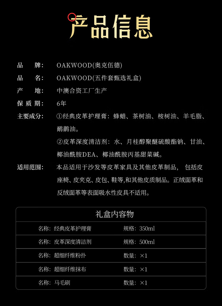 奥克伍德 澳洲进口皮革清洁护理五件套礼盒OP-358