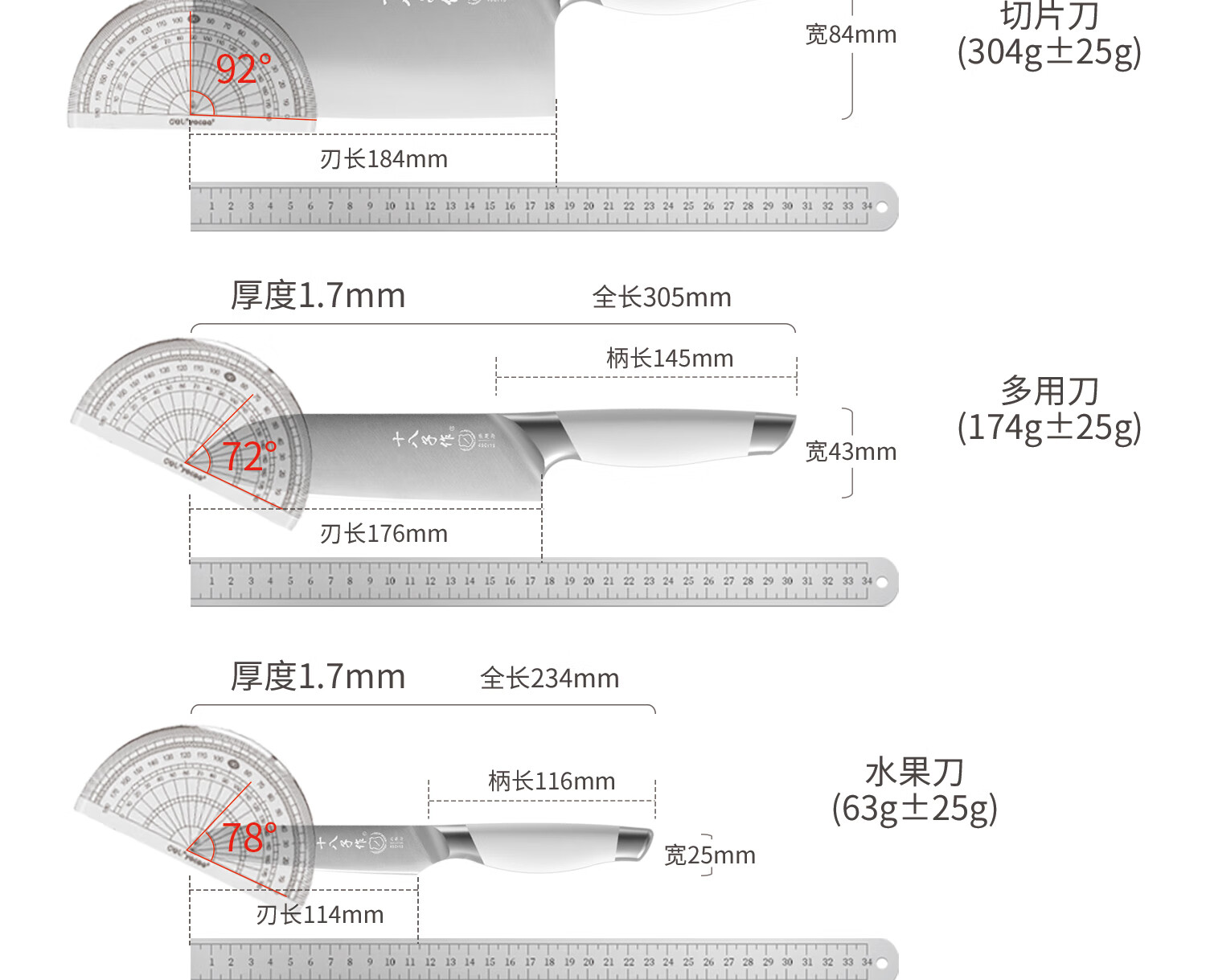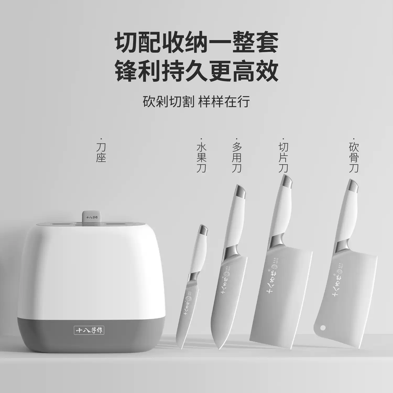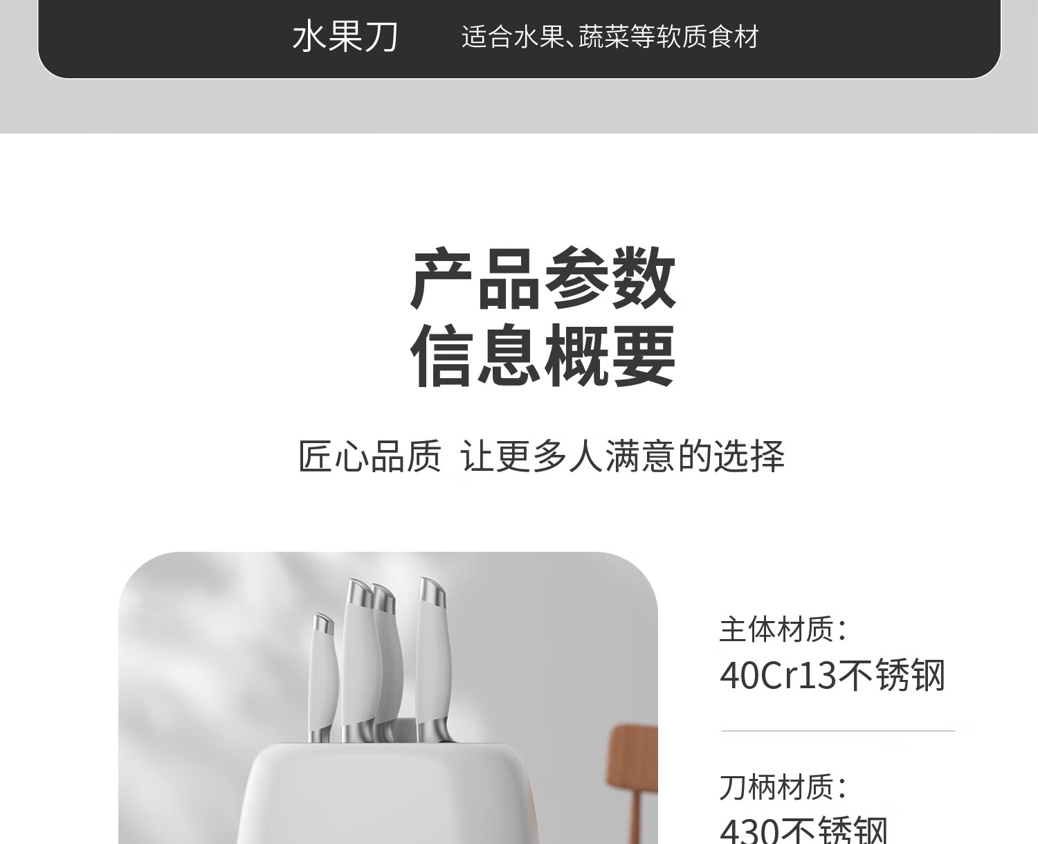 配置:砍骨刀、切片刀、多用刀、水果刀 刀座