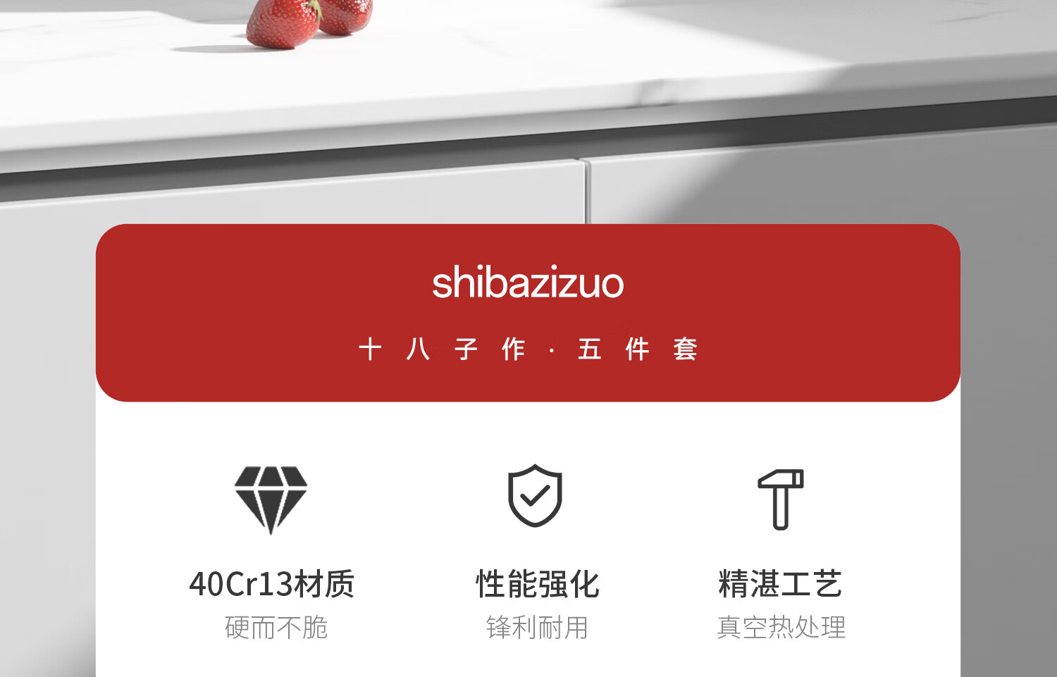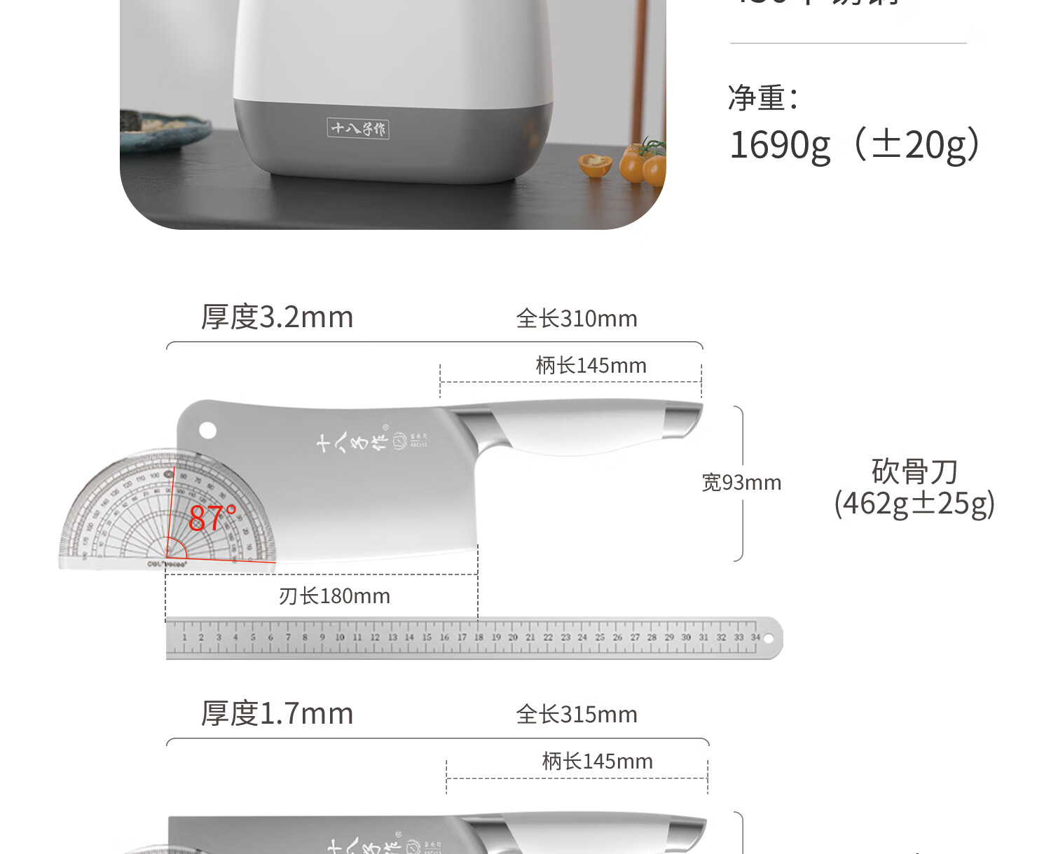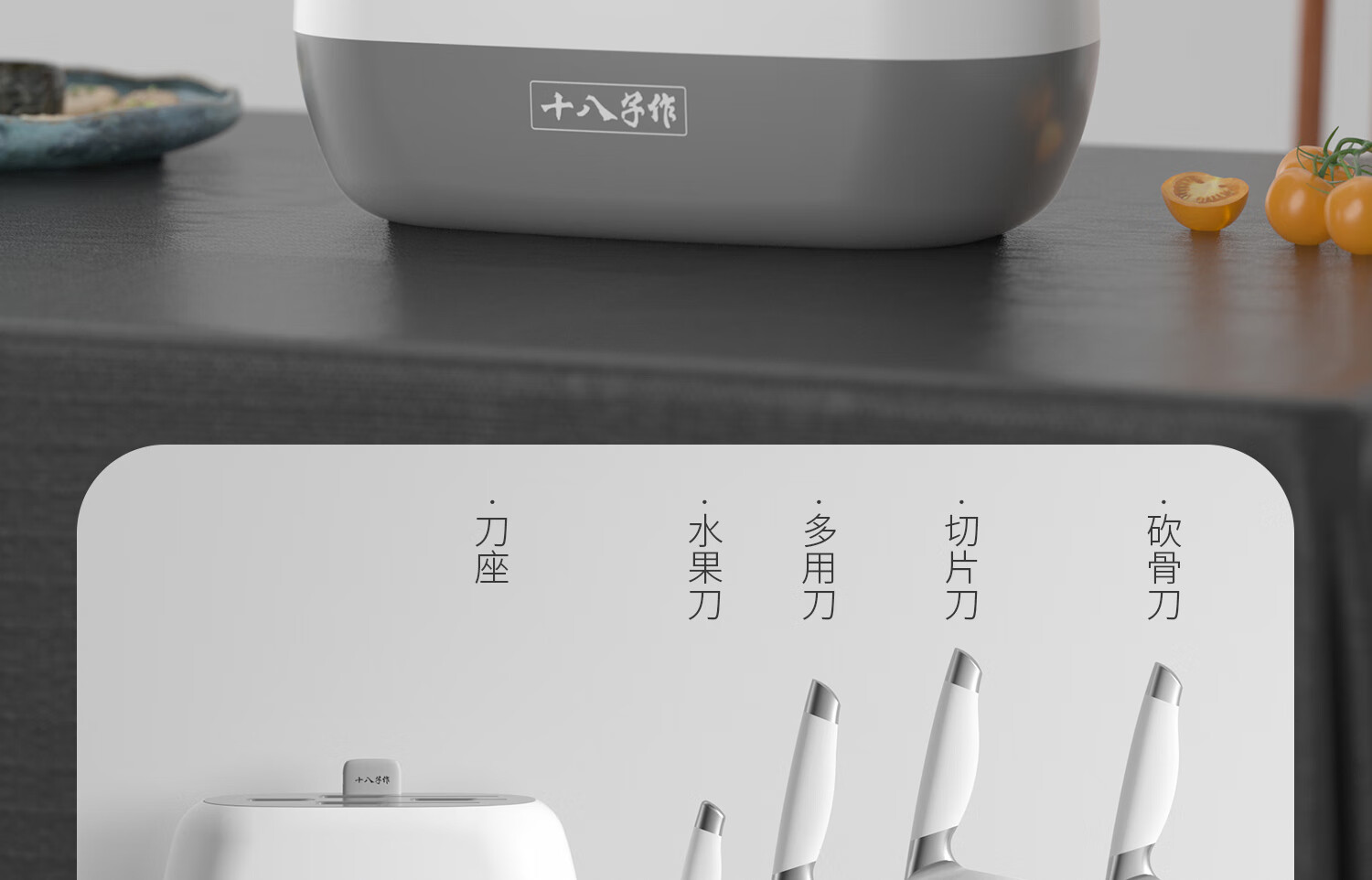 配置:砍骨刀、切片刀、多用刀、水果刀 刀座