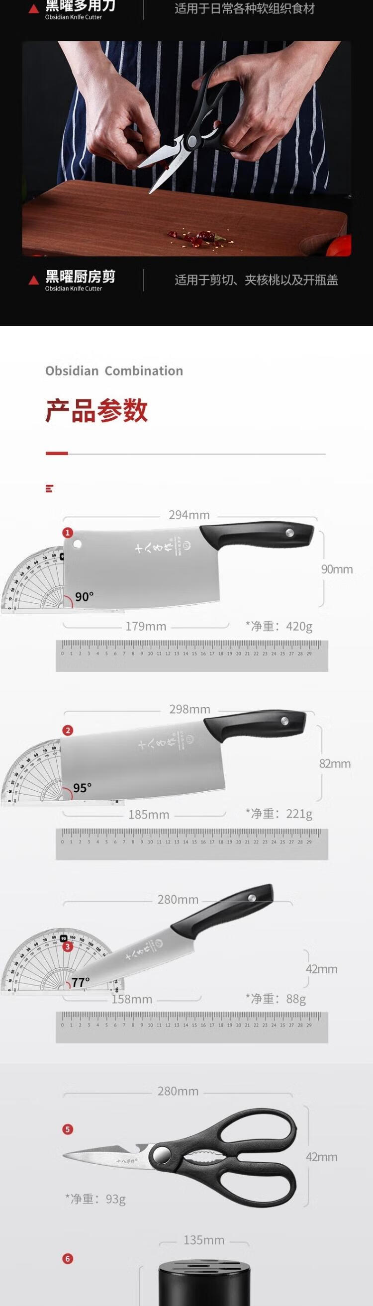 配置:斩骨刀 厨房剪 切片刀多用刀 刀座