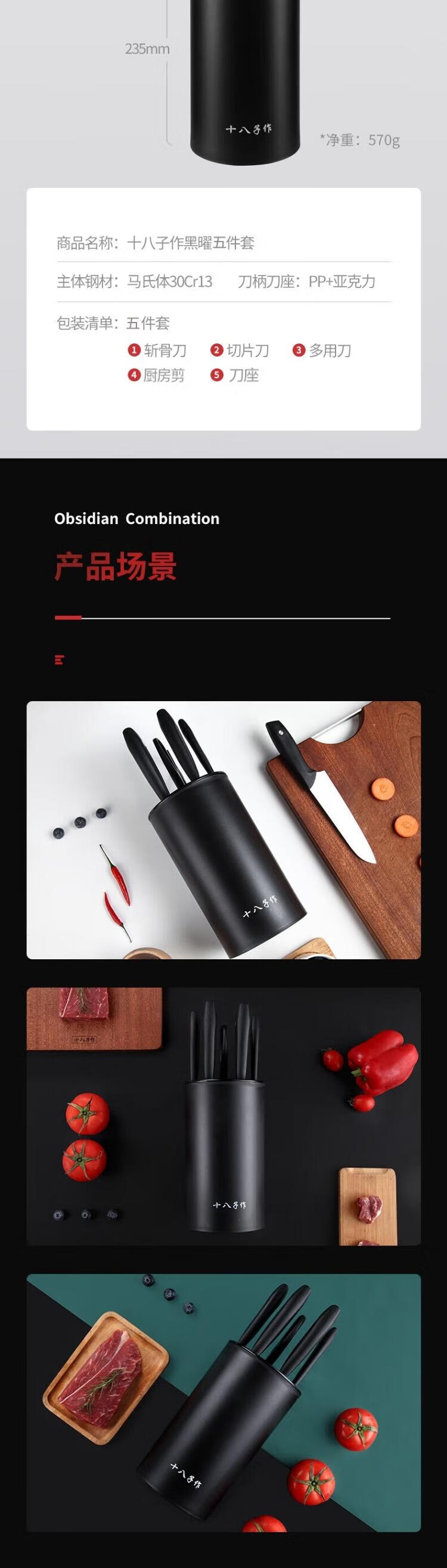 十八子作 黑曜五件套刀具套装S2008