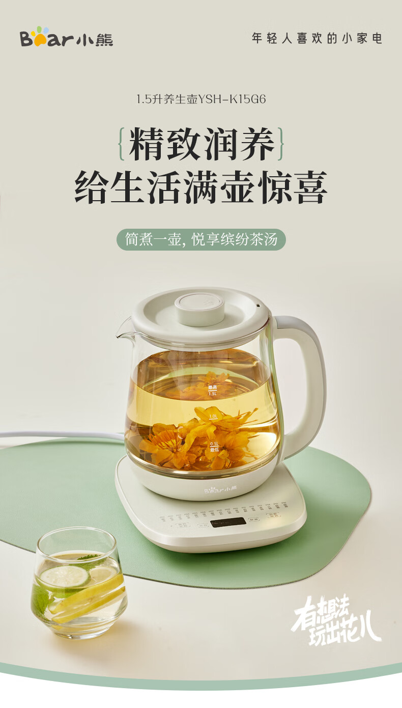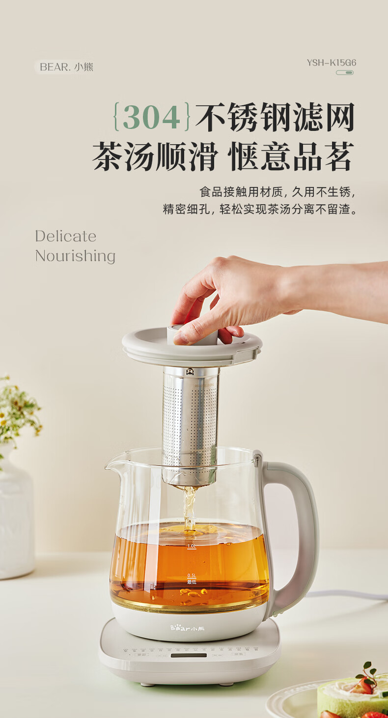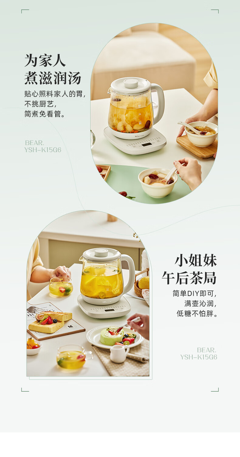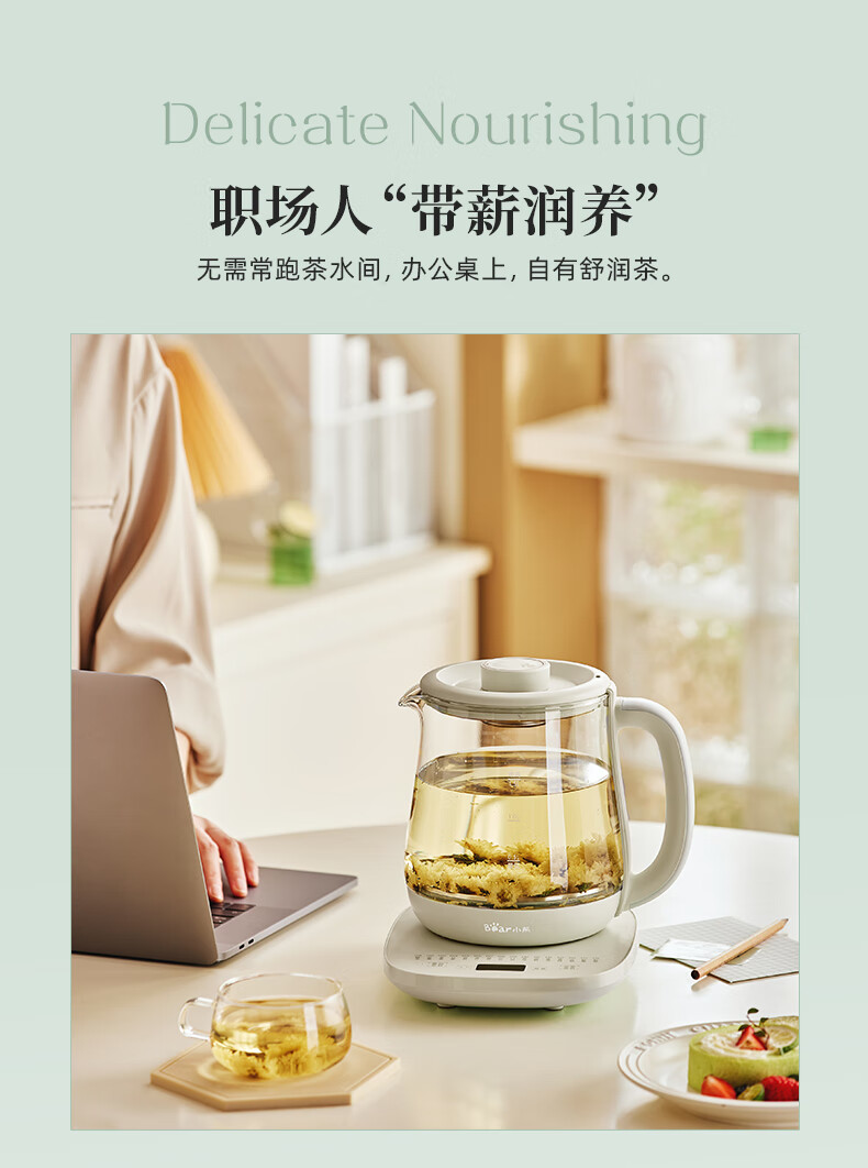 16大菜单简煮花样功能;12小时预约,提前约定早餐;40~90°C保温,冲调各式饮品