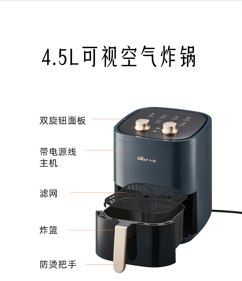 小熊 家用空气炸锅4.5LQZG-E12Z6