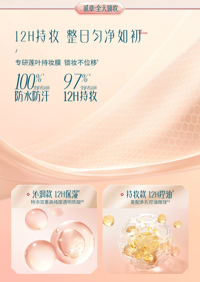 成分养肤:东方植物精粹,边化妆边养肤;妆效自然:半哑光微透,打造“伪素颜”;持妆出色:创新锁妆膜,全天候精致
