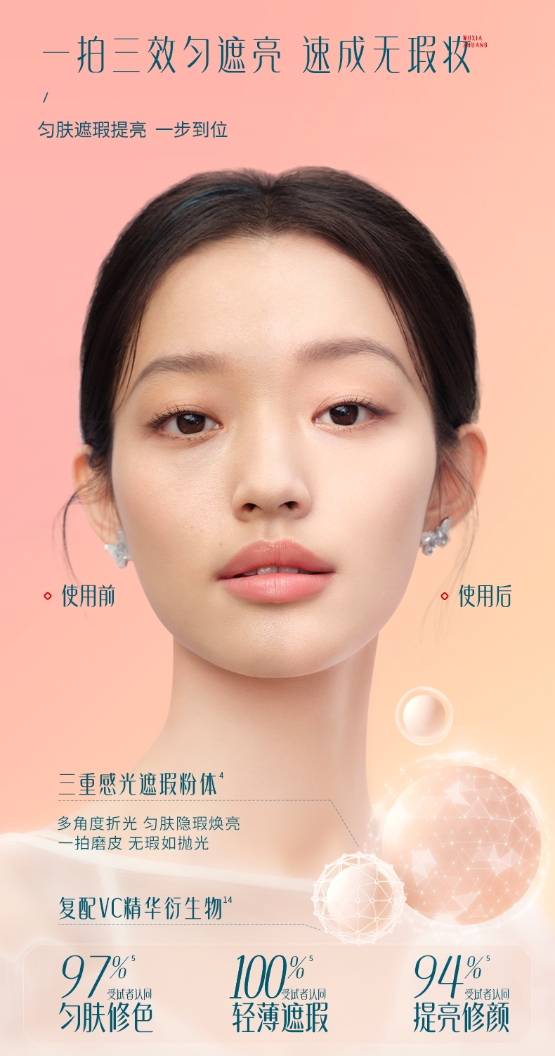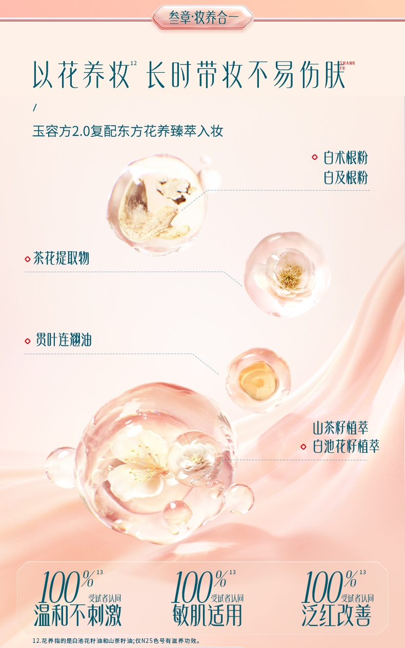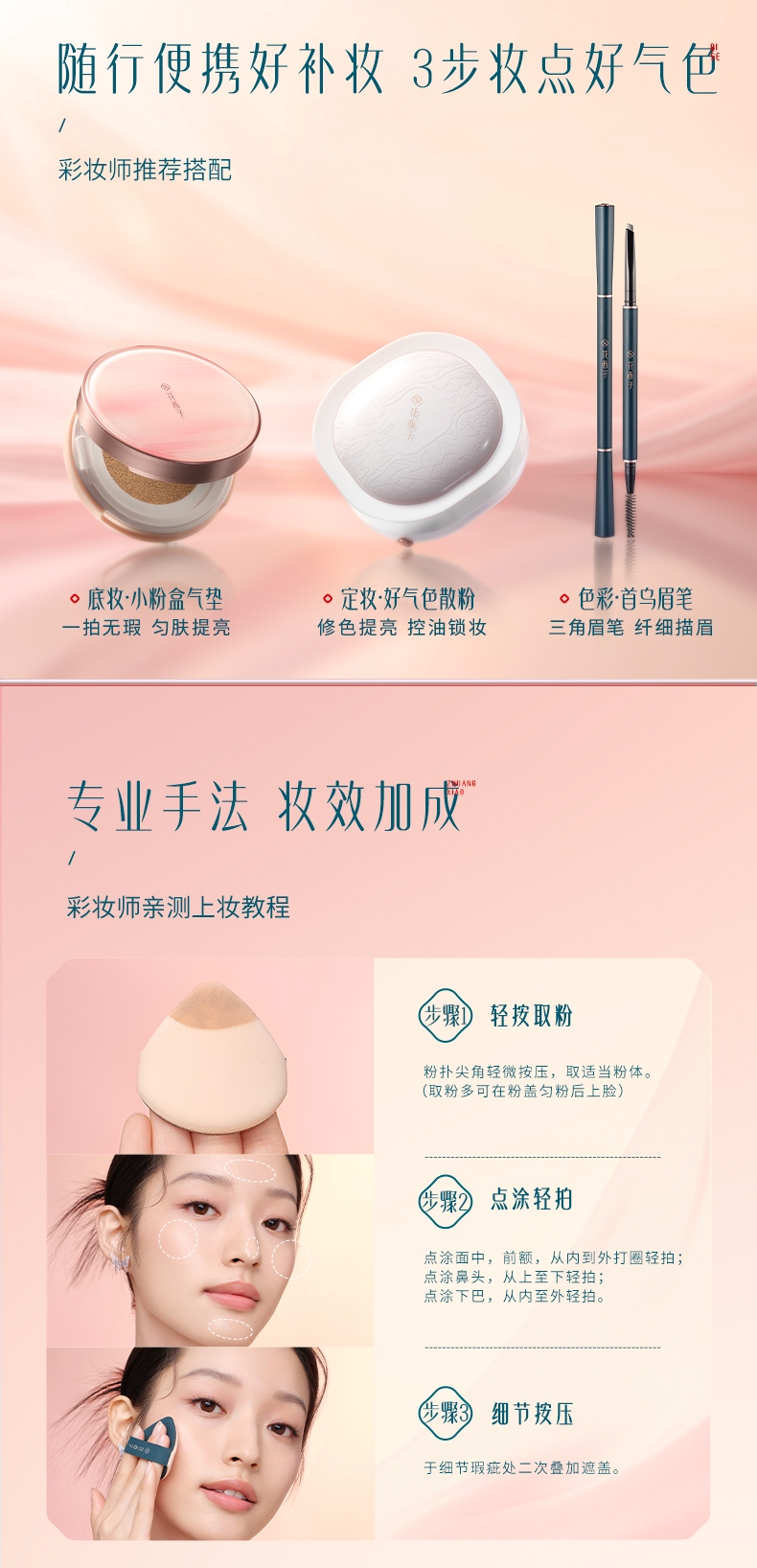 成分养肤:东方植物精粹,边化妆边养肤;妆效自然:半哑光微透,打造“伪素颜”;持妆出色:创新锁妆膜,全天候精致