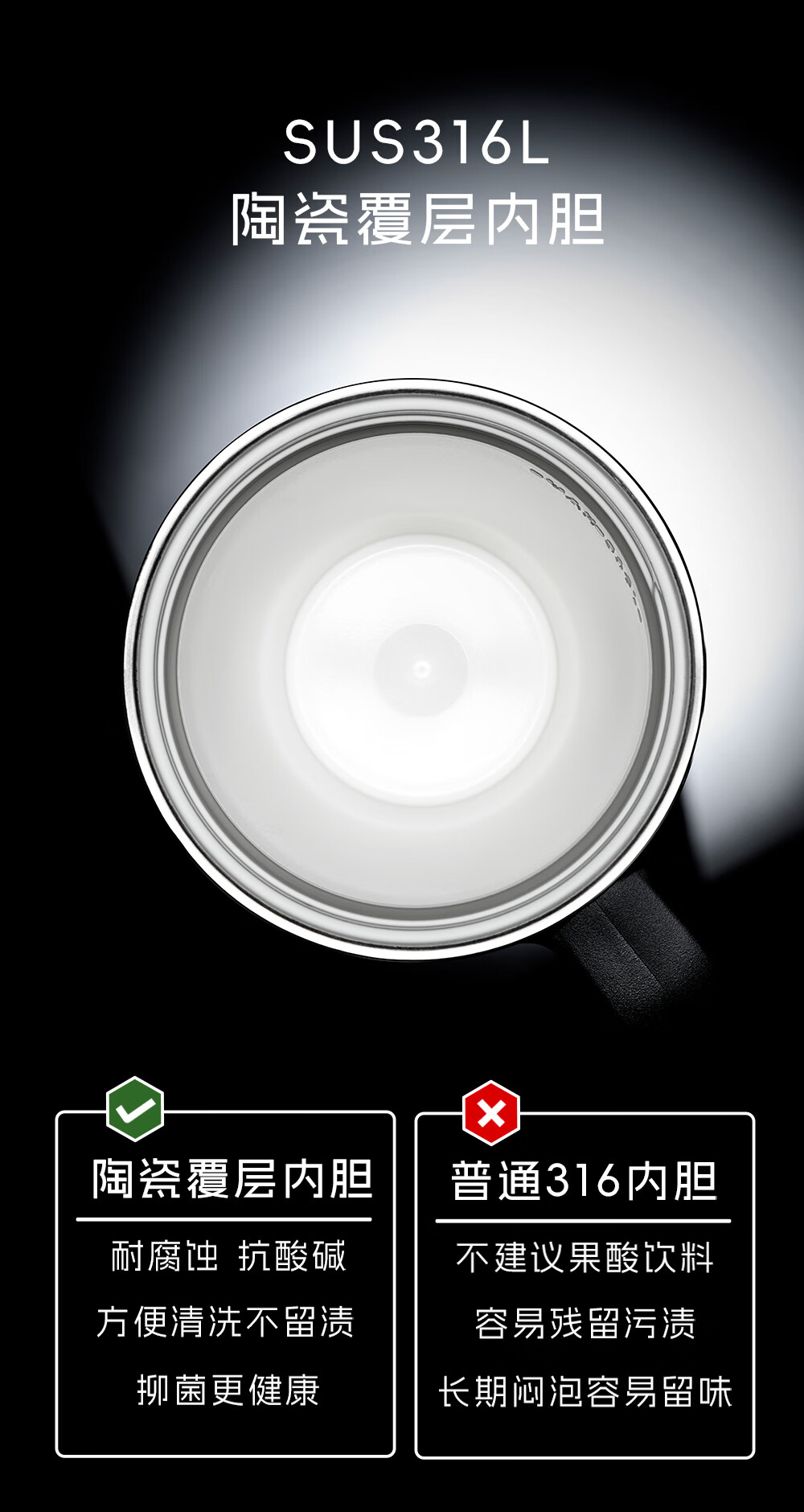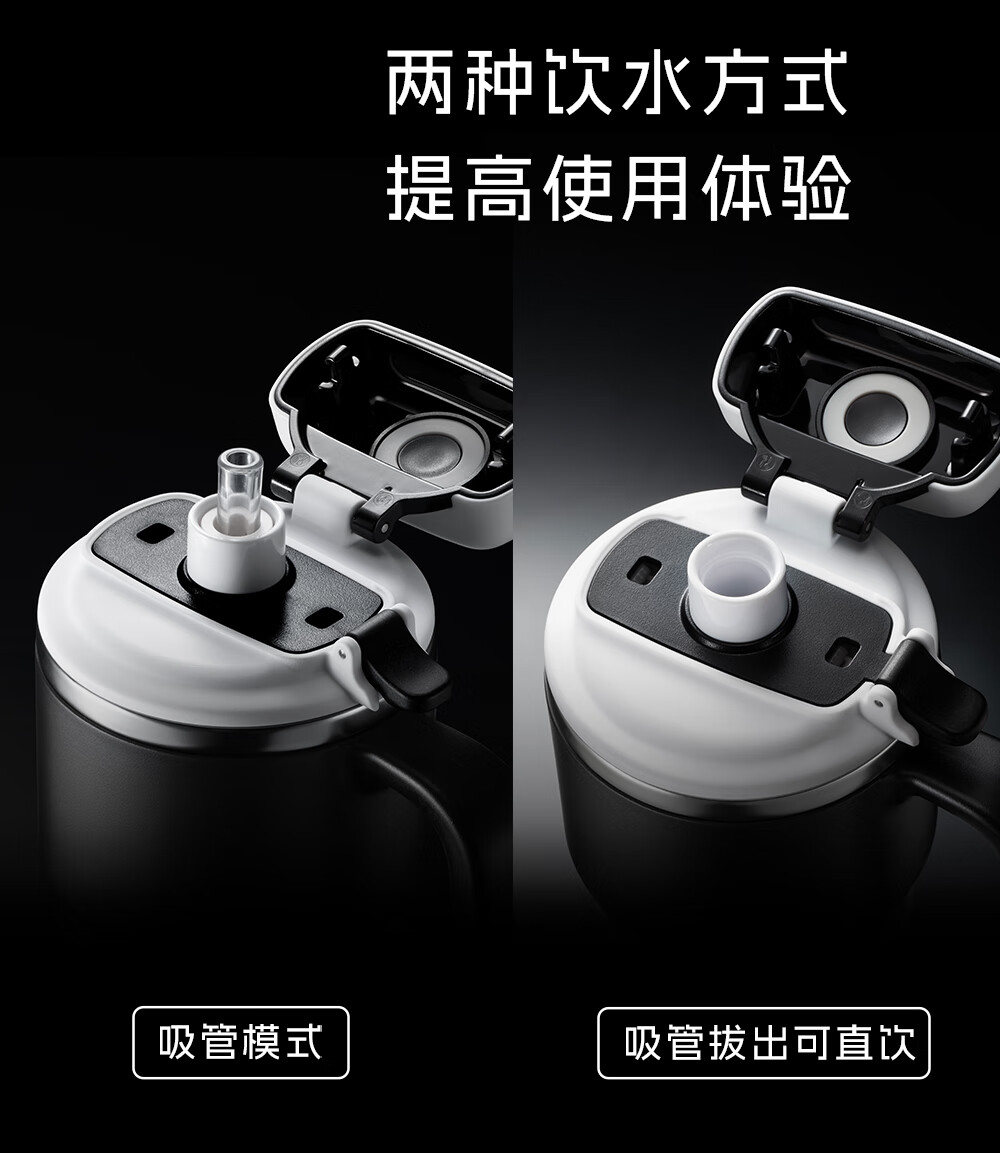 316不锈钢内胆+陶瓷涂层防腐更强;吸管口、直饮口随意切换;单手一键开盖