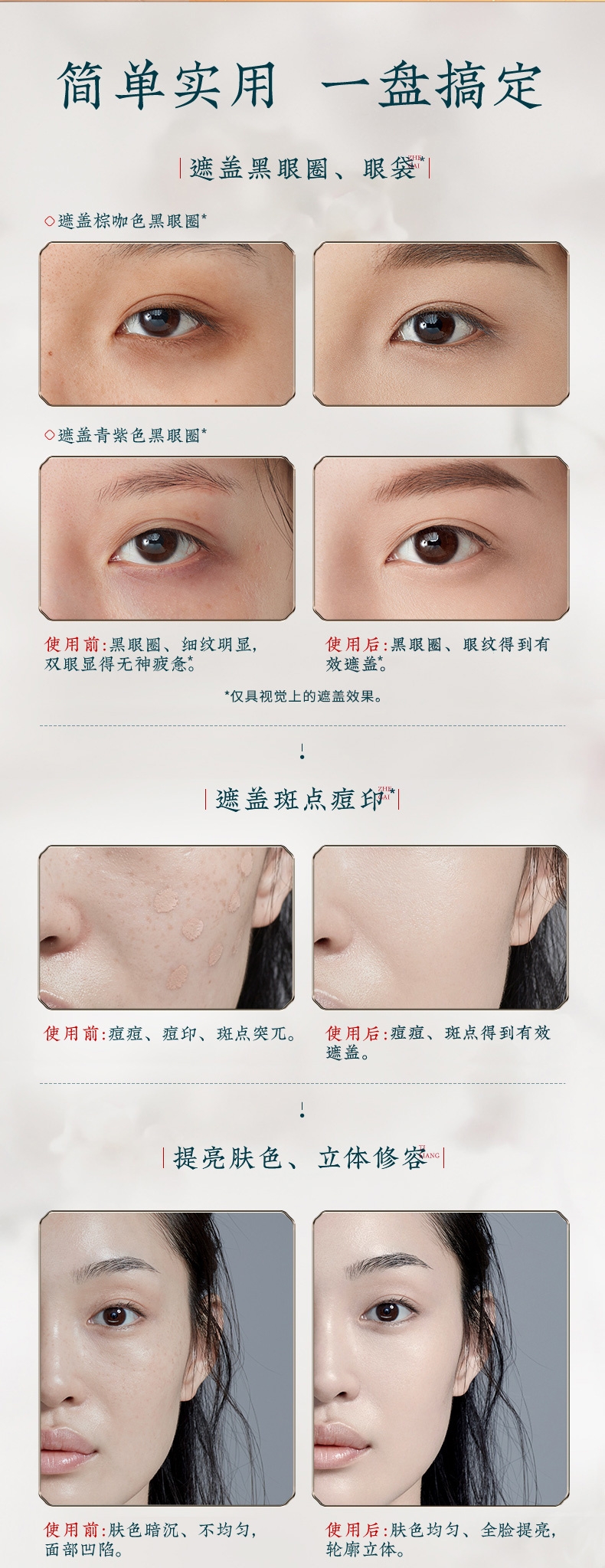 打造立体妆效,满足不同肤色和瑕疵类型的遮瑕需求。;质地轻盈柔滑,触肤顺滑易推开;操作简便,即使是化妆新手也能轻松上手
