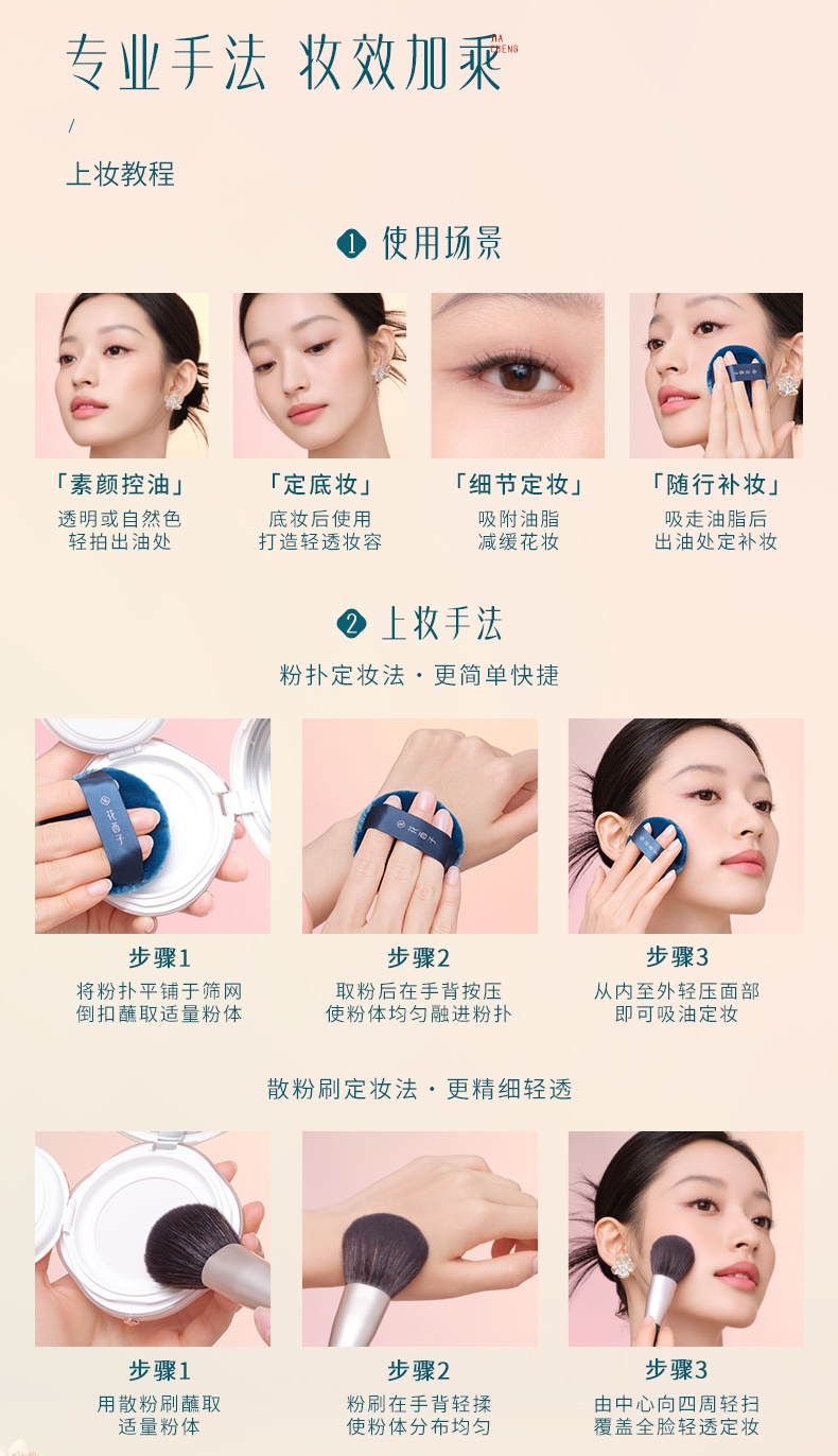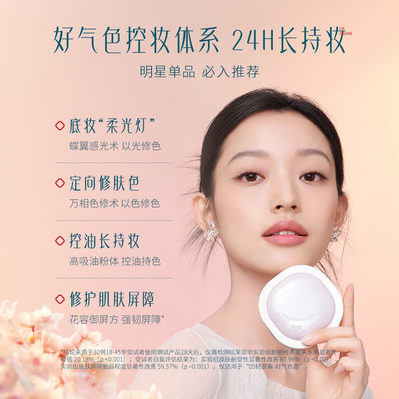 粉质细腻,妆效自然;包装设计精美,便携实用;采用遇水成膜技术,在接触水分时能迅速形成保护膜