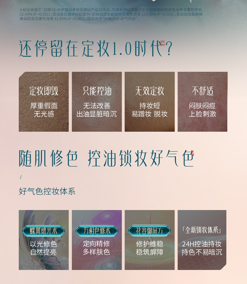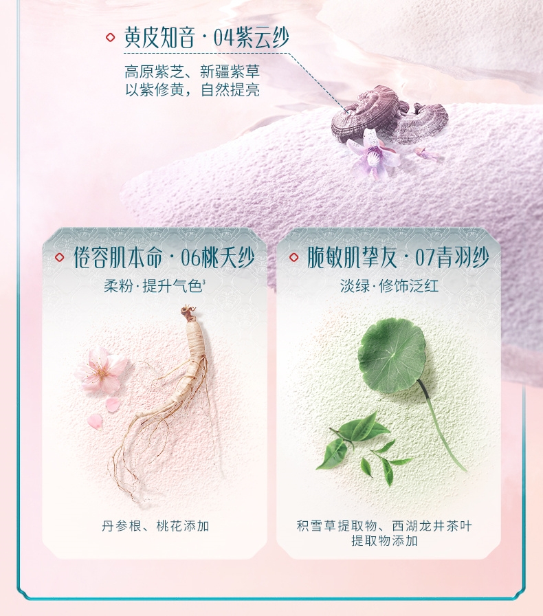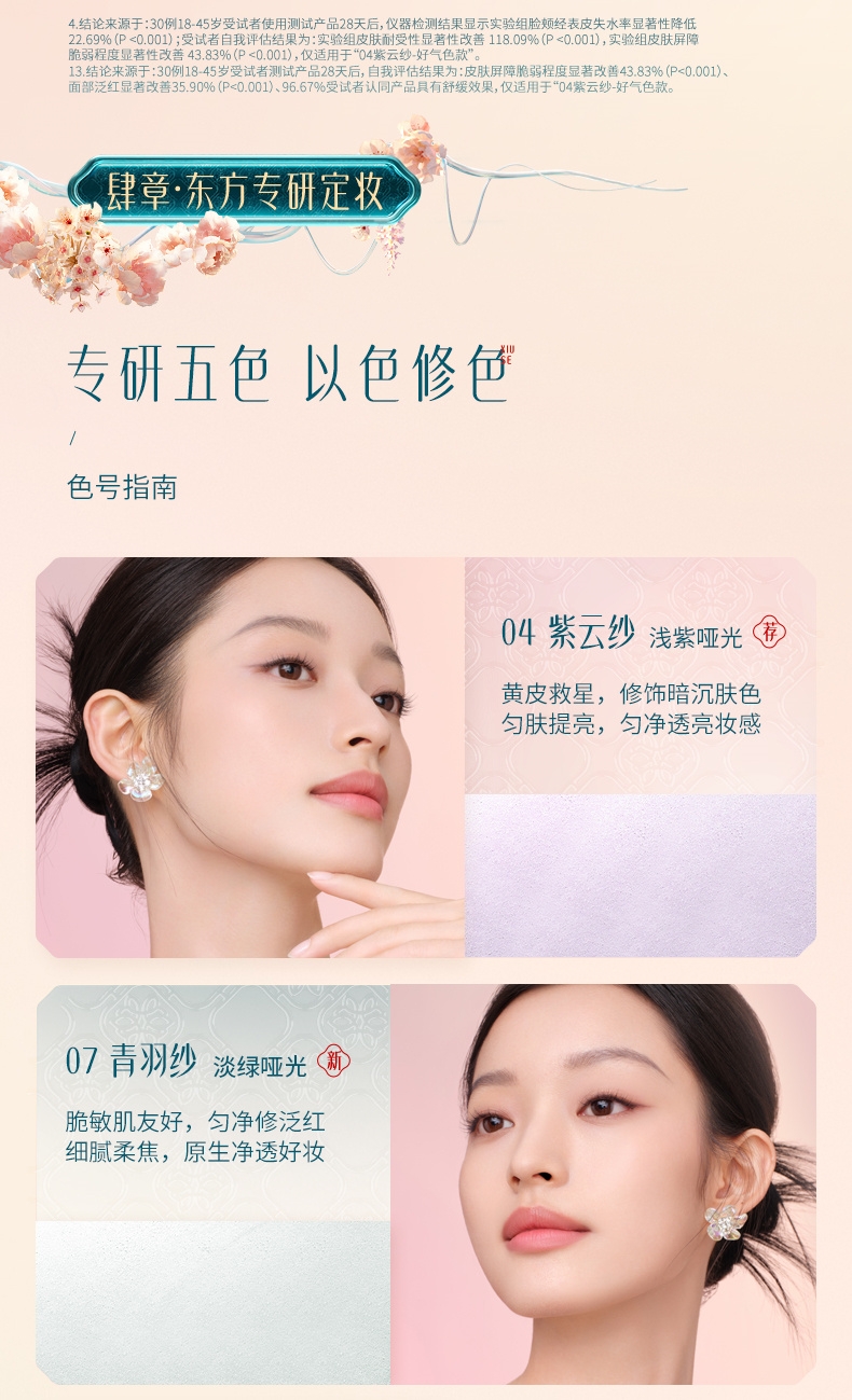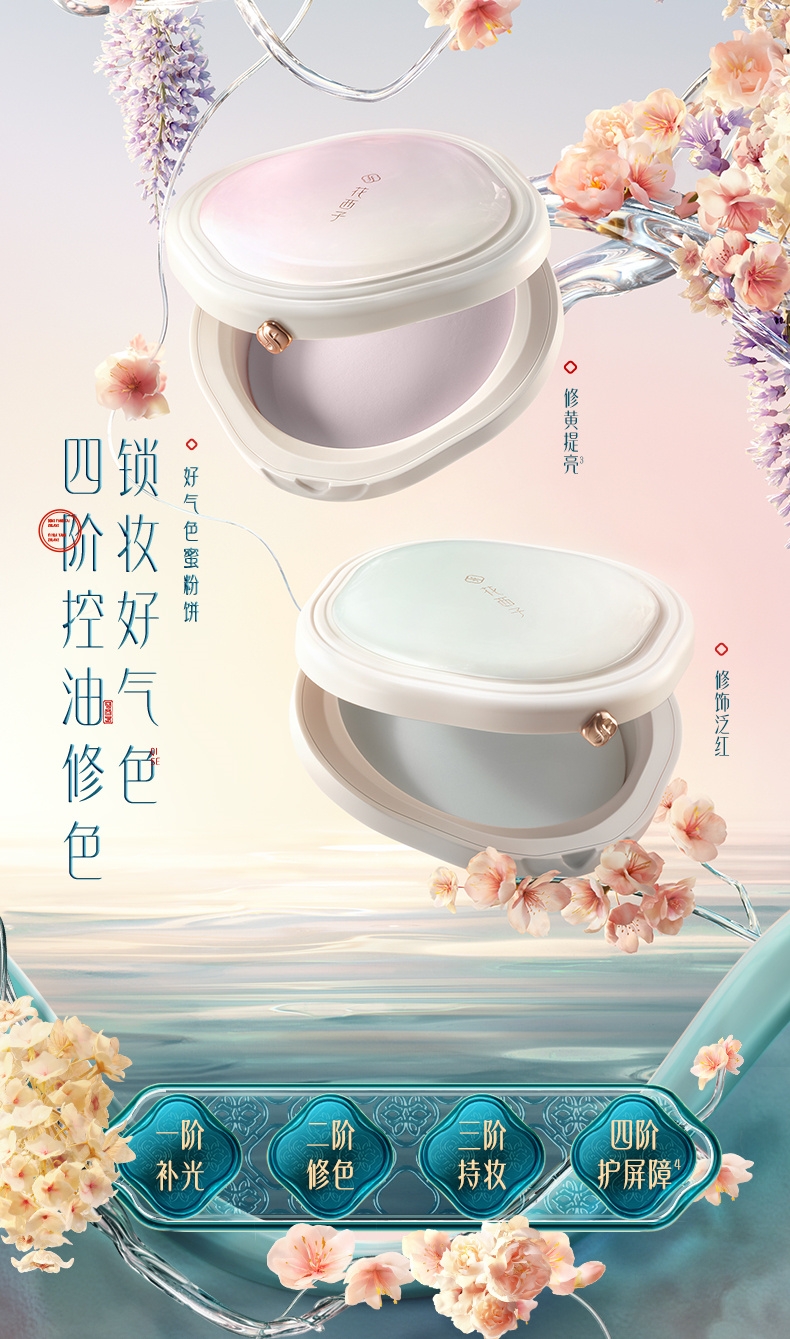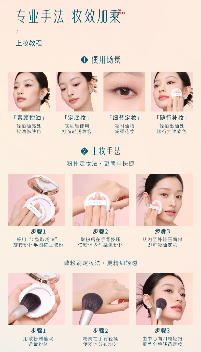 东方美学设计,颜值与实用并存;粉质细腻轻盈,打造自然柔焦妆效;控油持妆,妆容持久清新