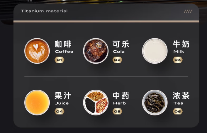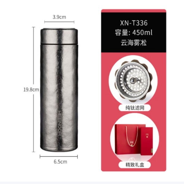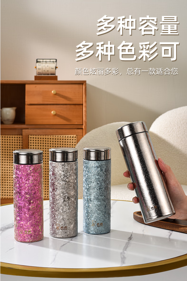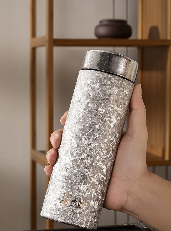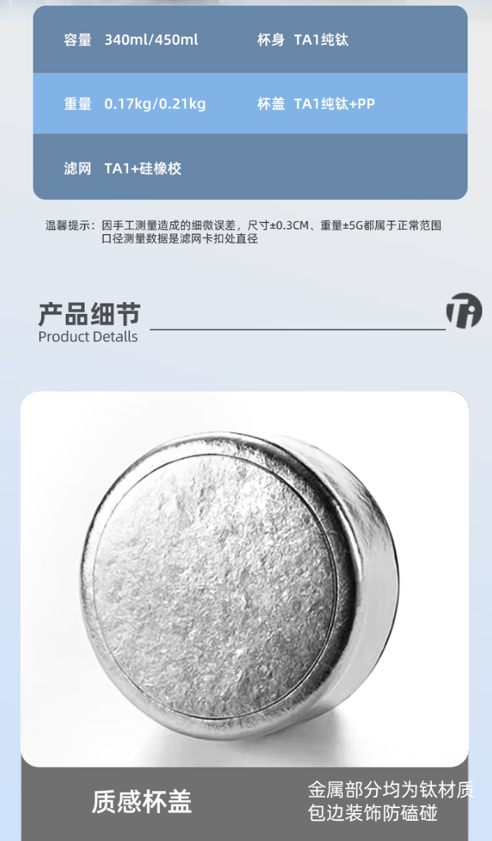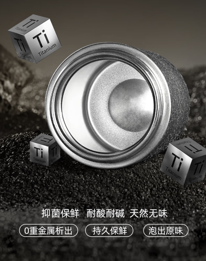 纯钛杯身,长效保温抑菌;用钛杯喝水,抗衰养生,越喝越健康;99%内外纯钛,轻巧材质,随行随饮